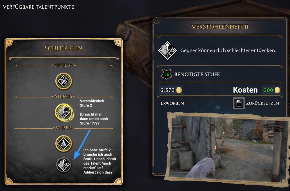 Wenn ich bereits "Verstohlenheit Stufe 2" freischalten kann (Schleichen), brauche ich dann trotzdem noch "Verstohlenheit Stufe 1", damit der Effekt vollständig ist? Wie man sieht, kann ich Stufe 2 freischalten, obwohl ich Stufe 1 nie freigeschaltet hatte.