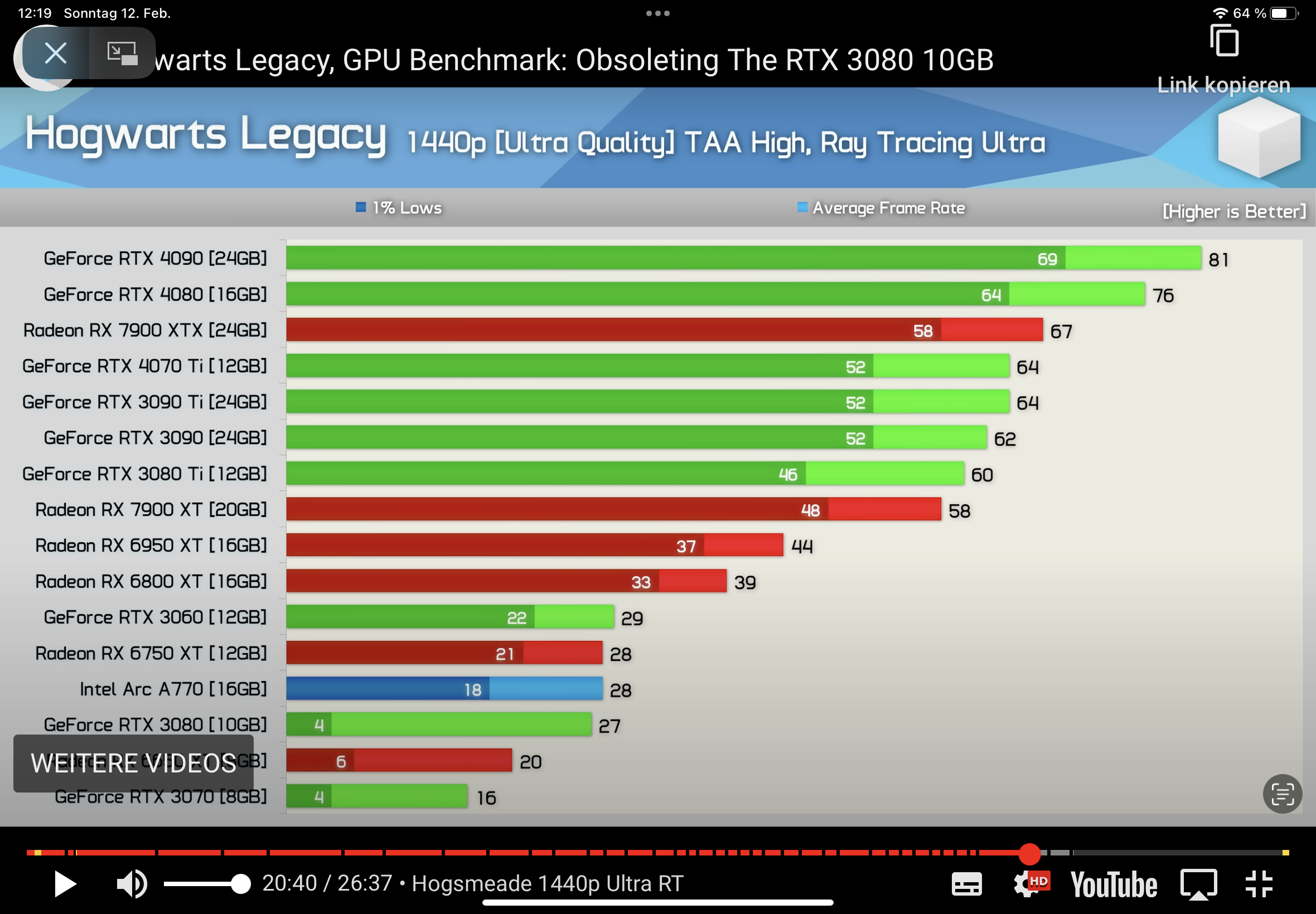 mal ne andere Frage: Ich habe gestern das Game angefangen und auf einem 1440p Monitor via Steam Link App auf der Nvidia Shield ins Wohnzimmer gestreamt. Ursprünglich habe ich mit den Standard Settings gespielt (Ultra Preset ohne Raytracing mit DLSS Quality). Eben habe ich am Rechner direkt mal Raytracing Ultra und natives 1440p getestet und festgestellt das es auch noch mit 60 FPS läuft (V-Sync limit).
