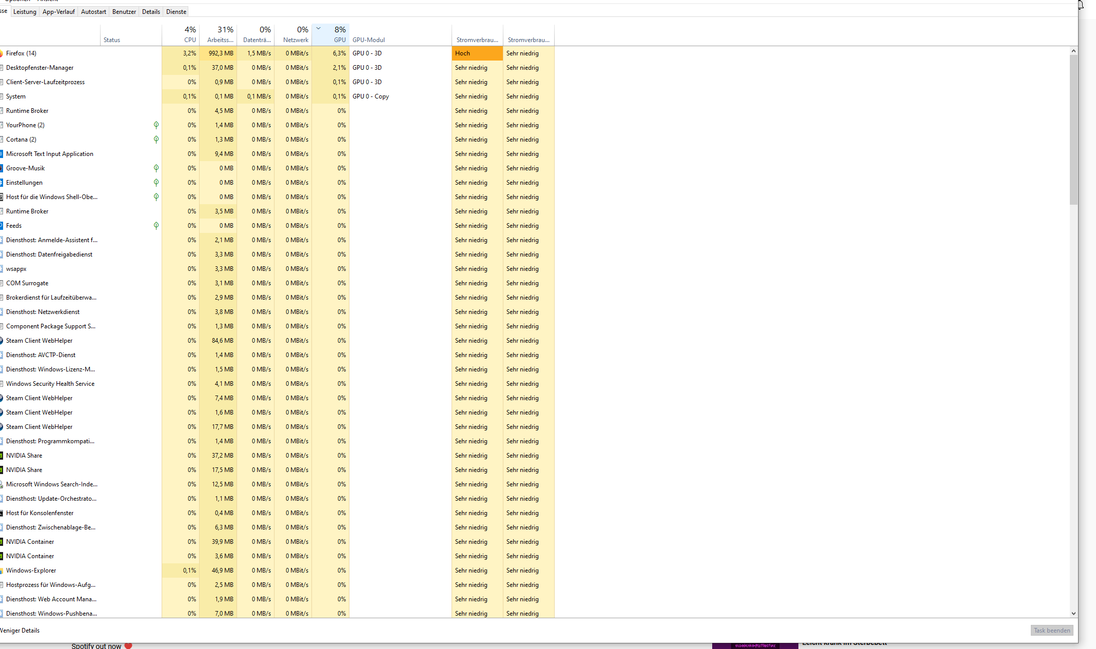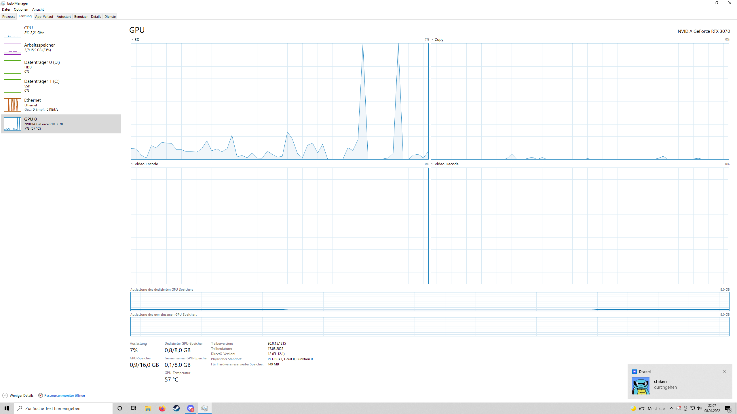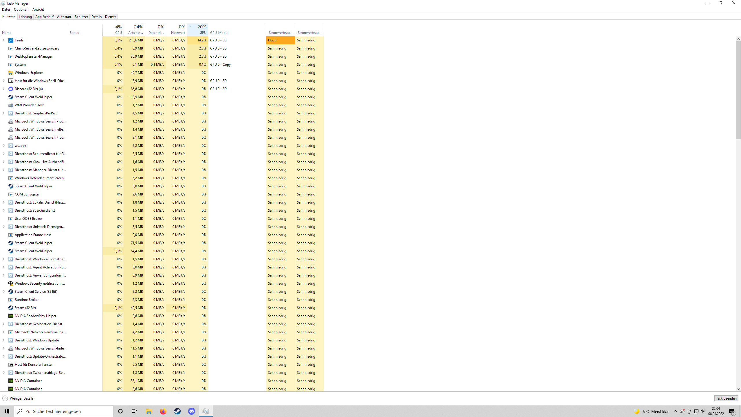 Es reicht nur, wenn ich discord öffne und für 1sek steigt die Auslastung auf 100 Prozent.