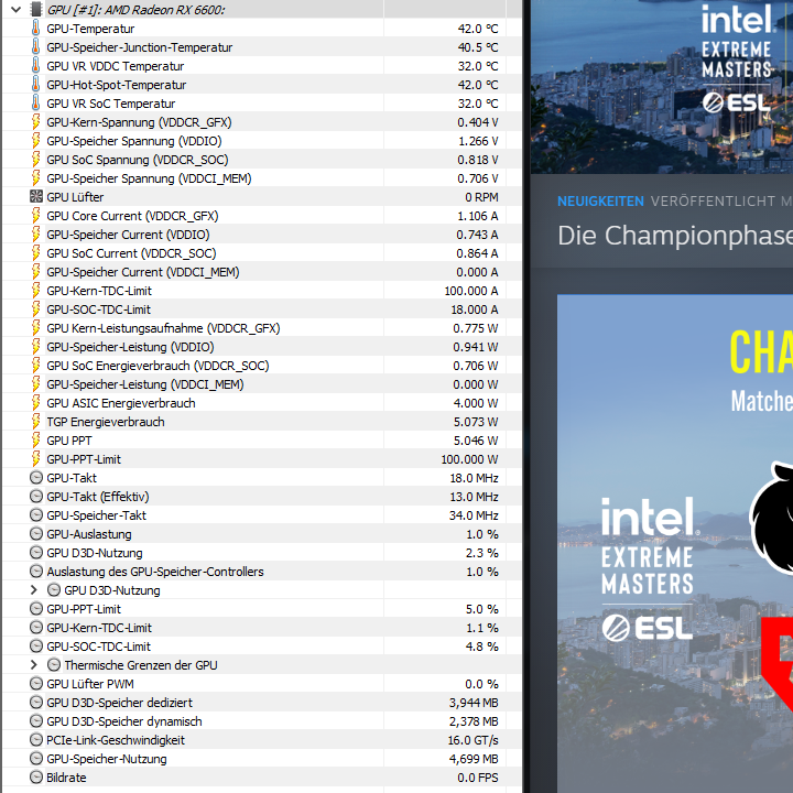 Extrem ist es bei der Updateinfo zu Vampire Survivor. Beispiele populärer Spiele: Bei Witcher 3 ist es ähnlich, CS:GO hat überhaupt keine Auslastung. Der Mauszeiger muss sich auf dem Update Screen/Steam befinden. Befindet man sich zB mit der Maus auf der Taskleiste, reduziert sich die Auslastung auf ein Minimum. Mit der iGPU der CPU verhält sich alles normal – das System ist flüsterleise.