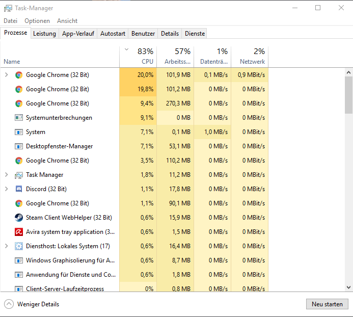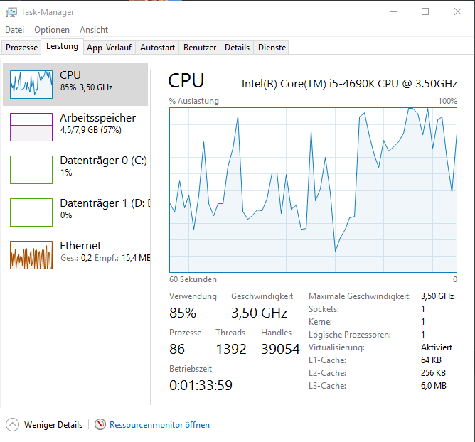 Ich habe zur Zeit Probleme mit sehr hoher CPU Auslastung.