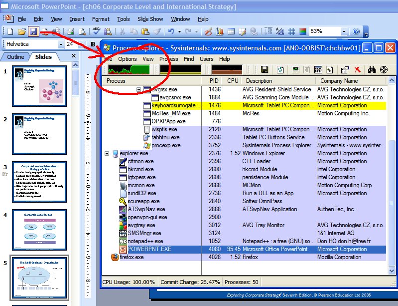 ich hab den Process Explorer (ehemals Sysinternals) und da zeigt es mir die Anwendung selbst an, also Word oder PPT.