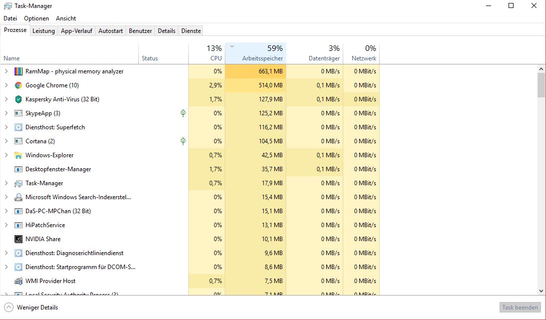 Manchmal ist nach dem Windows Start schon 47% Arbeitsspeicher verbraucht was im laufe weiter Ansteigt. Manchmal startet es bei 15% RAM Nutzung nach dem Start, warum weis ich nicht.