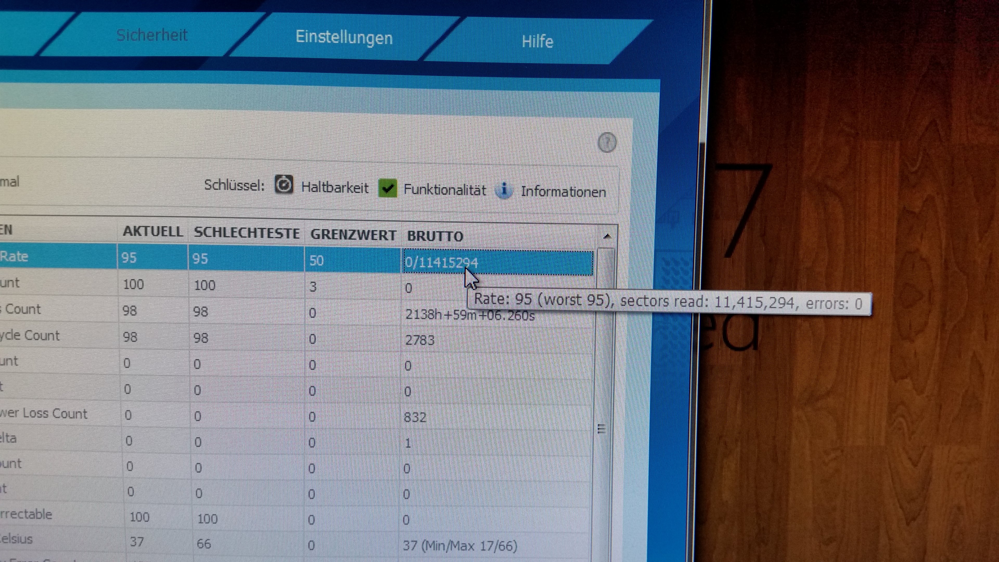 Wobei es die Aufgabe des Hersteller der HDD/SSD ist, dies öffentlich zugänglich zu dokumentieren, dann können die Team welche Tools wie CrystalDiskInfo programmieren, die Unterstützung dafür auch einpflegen und sei es nur die korrekten Namen der Attrbute.Chuuei schrieb:Die Angaben vom Crystal Disk Info kannst du in die Tonne kloppen. Problem ist das SMART nicht standardisiert ist, nicht in welchen Attribut welche Daten stehen, ja noch nicht mal der Attributaufbau ist standardisiert und obwohl einige Attribute quasi identisch genutzt werden von den Herstellern, sind die meisten es nicht.