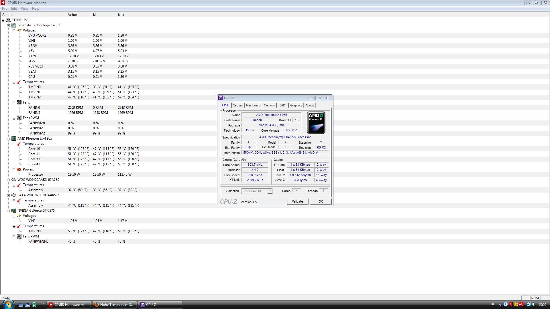 CPU: AMD Phenom 2 x4 955 BE -> 61°C boxed