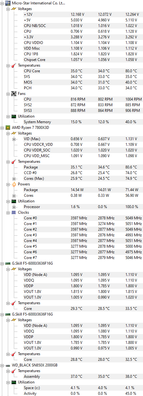 @NuVirus Ich hab jetzt noch mal nebenbei im Bios meine Lüfter neu konfiguriert und noch einen Cinebench run gemacht um zu sehen ob das ausreicht (79-80°C max also ok). Dafür auch EXPO aus gemacht um zu sehen wieviel sich zum run mit EXPO am So verändert.
