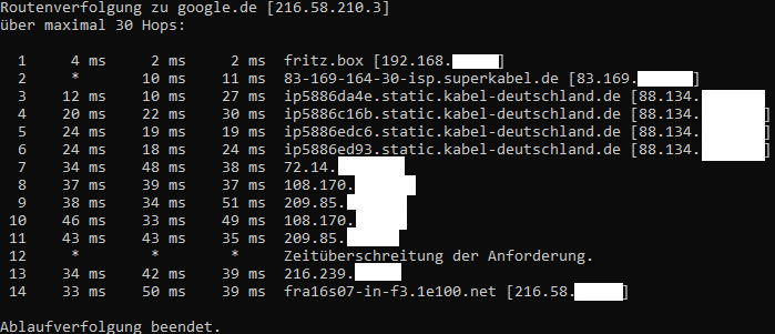Im Anhang befindet sich ein Bild mit dem Tracert befehl.