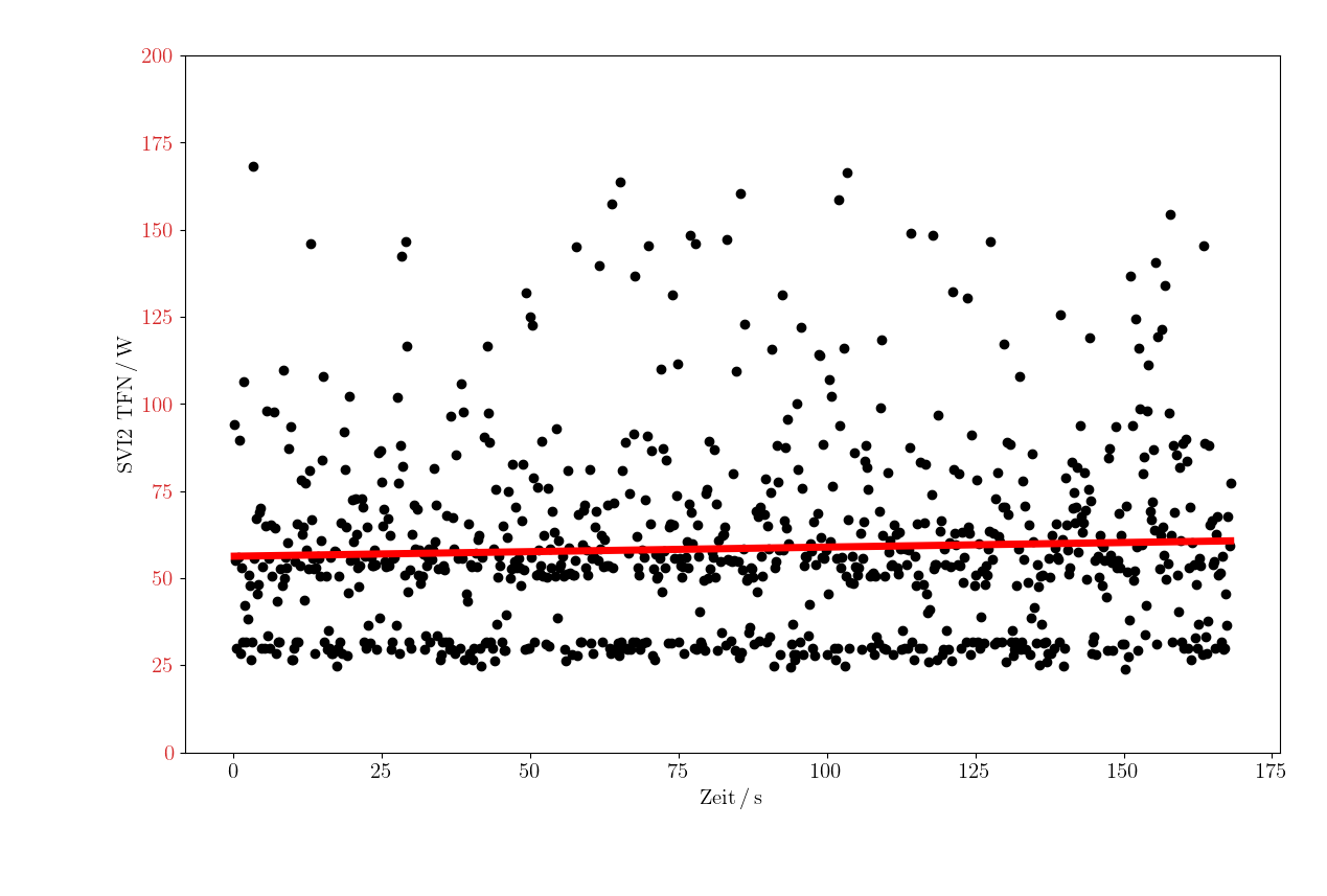 Ich hatte heute Abned Zeit mal einen kurzen Log erstelllt. Im Anhang bahe ich das mal geplottet und einen Linearen Fit durch die Punte gelegt(rot). Die durchschnittliche CPU Auslastung lag bei 1.9%.