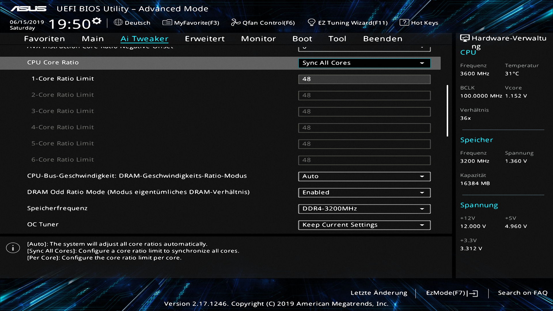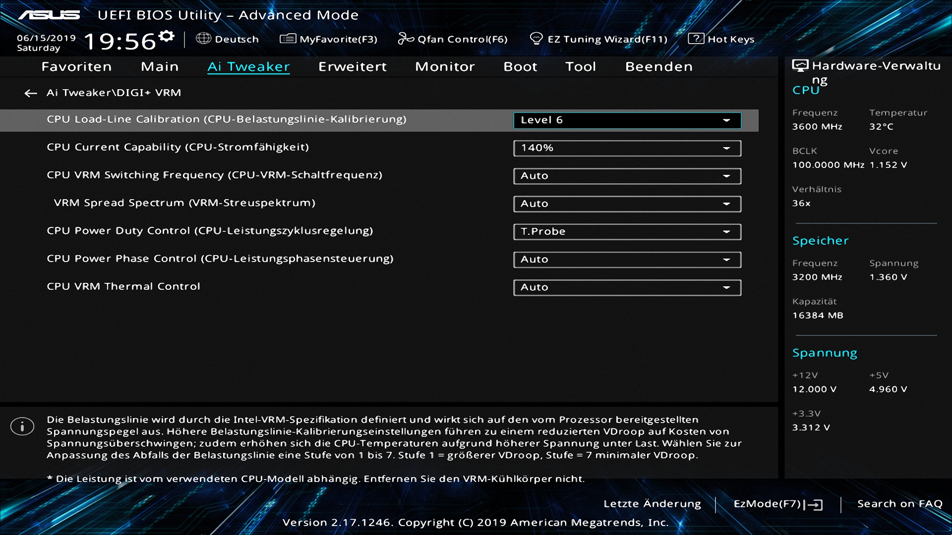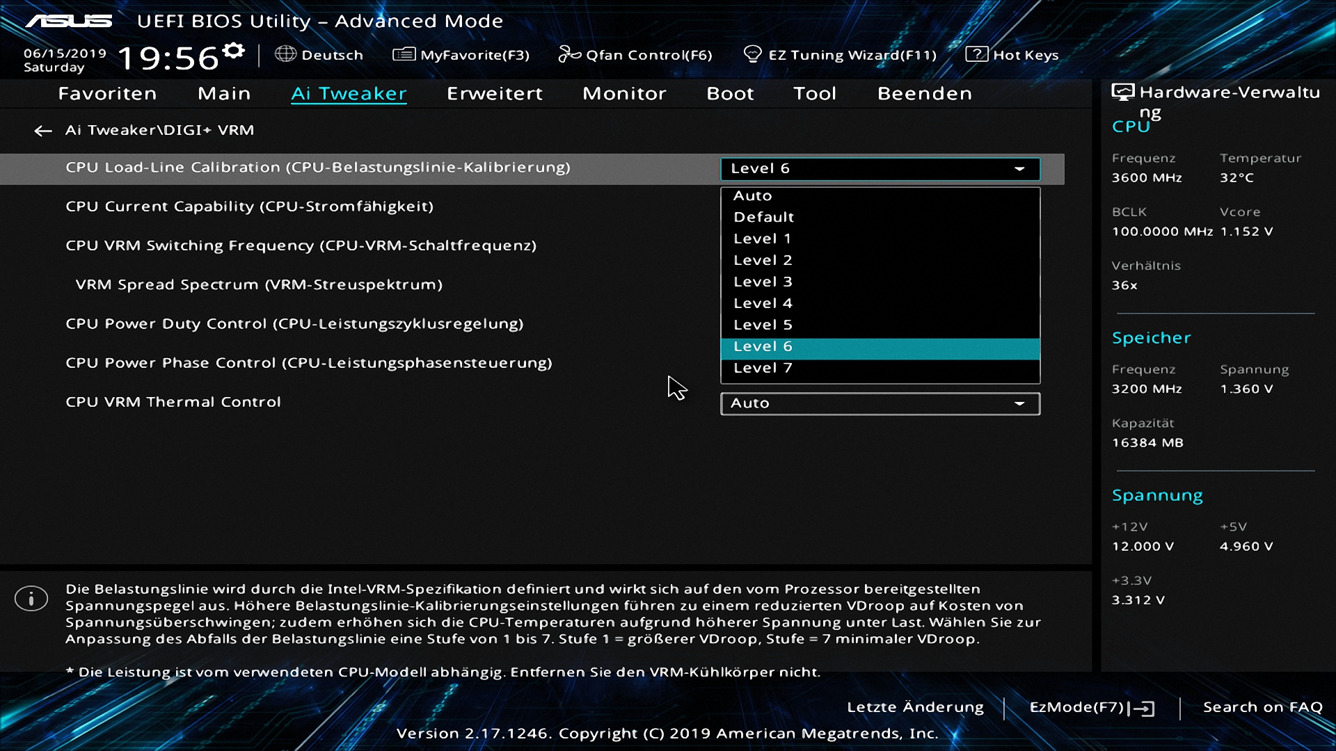 Die Werte sehen doch jetzt eigentlich ganz gut aus, oder? LLC ist noch auf AUTO eingestellt, bin mir nicht ganz sicher ob das so am besten ist.
