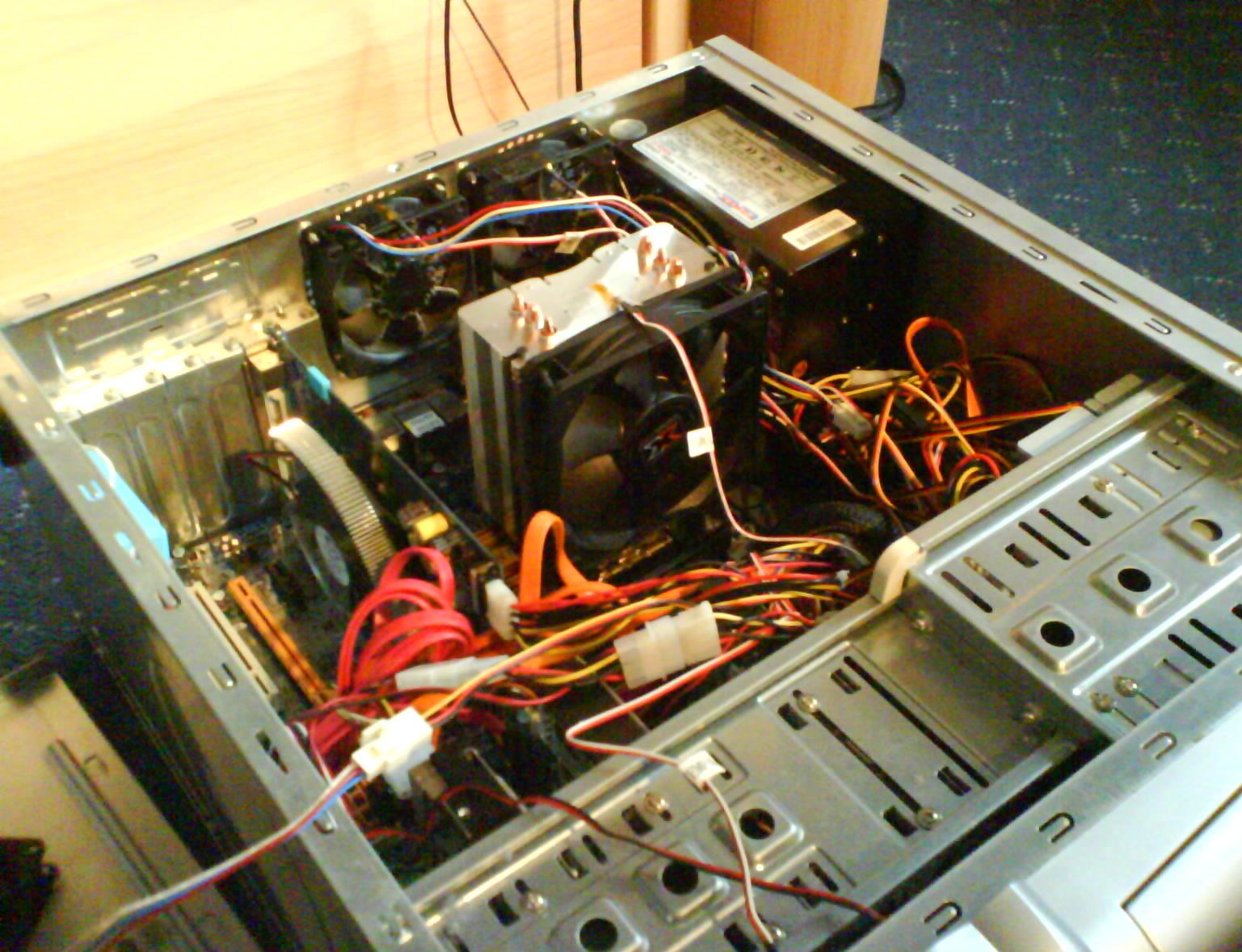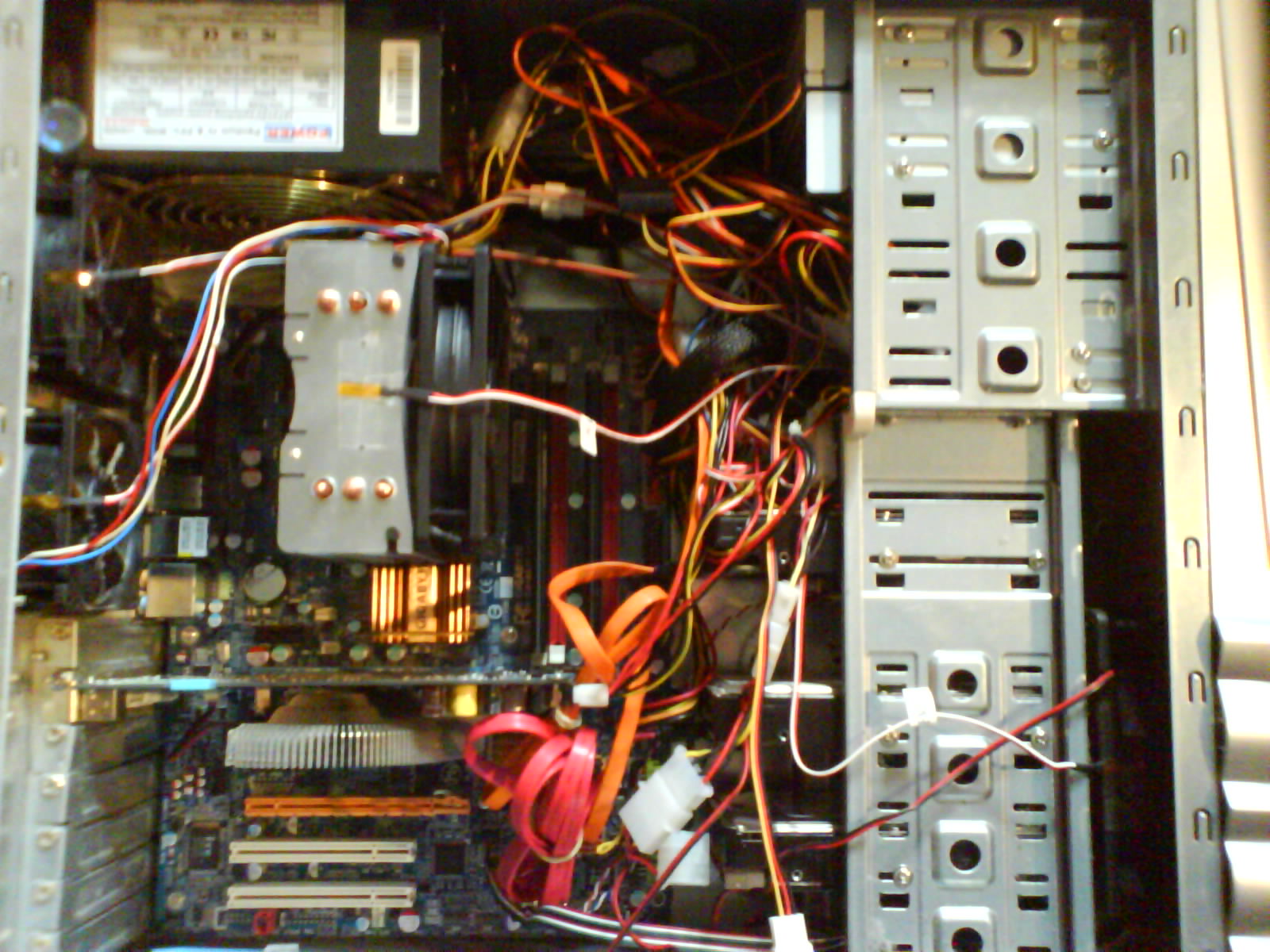 Der Kühler eines uralten P3 mit 800 Mhz und eine GeForce 4 Was sich unter dem orangen Kühler befindet...keine Ahnung