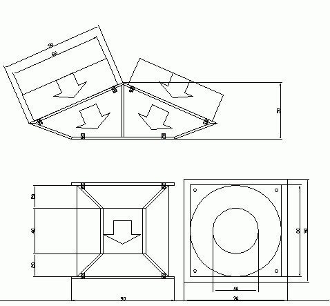 Im Prinzip einen Zuluftaufsatz z.B. für einen TT Silent Boost K8. Durch die Konstruktion mit zwei handelsüblichen Gehäuselüfter à 80x80mm und dem auf ein Viertel reduzierten Durchsatzquerschnitt, bekommt man einen Luftstrom mit der 8fachen der üblichen Luftstromgeschwindigkeit.