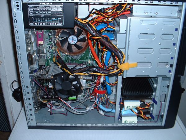 Ich benutze ne Wakü. Ich habe mir diese zusammengebastelt, als das Thema Wakü noch in den Kinderschuhen steckte. Das wird man auch auf einigen Bildern sehen. So hat mein Radiator noch überhaupt keine genormten Anschluesse für Schlaeuche. Hier musste ne ziemliche Bastellösung herhalten, die nun aber seit über 3 Jahren ihren Dienst verrichtet.