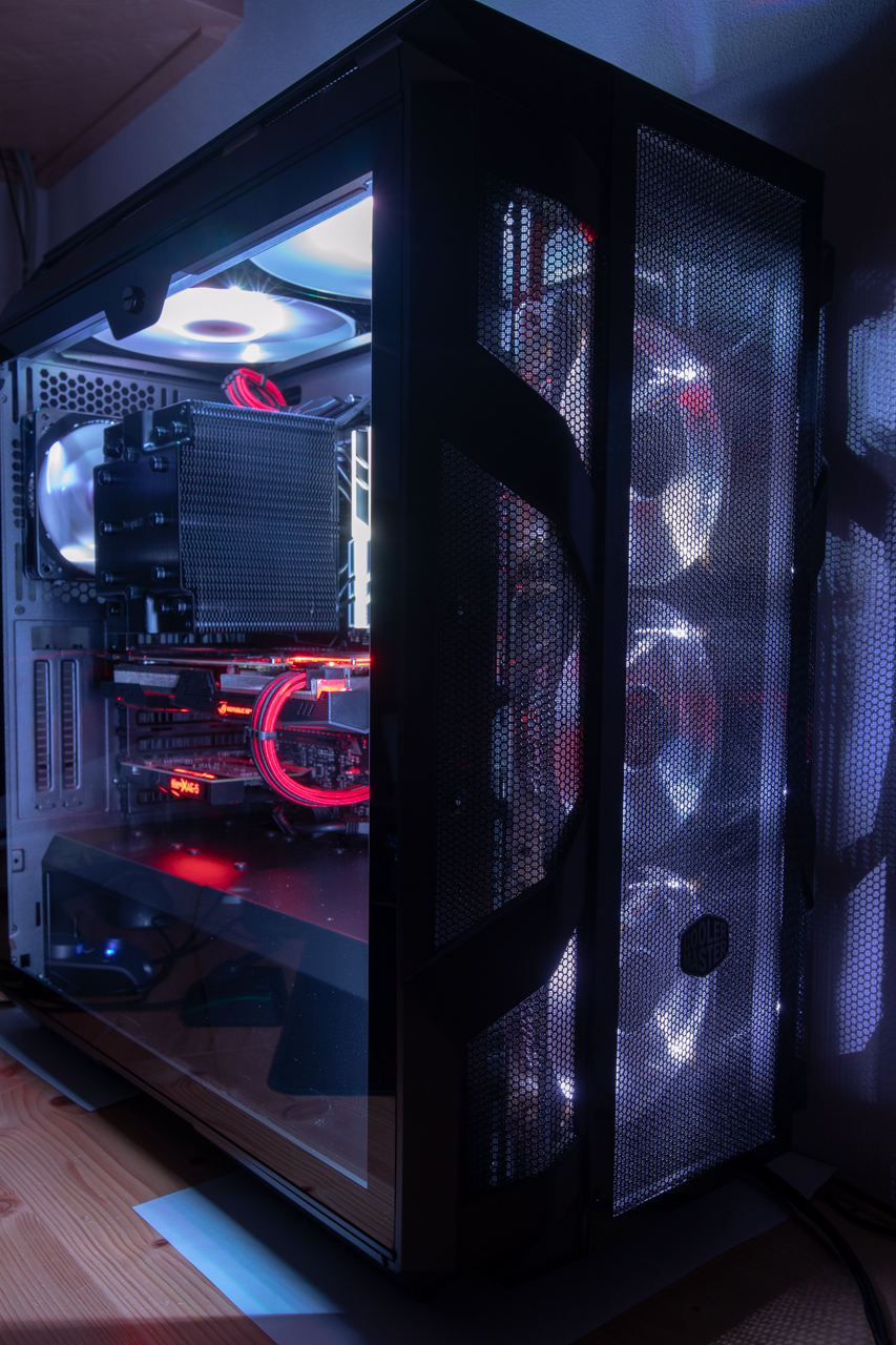 Hier mal meine Kiste. Das Bild ist allerdings nicht mehr aktuell. Hardware ist immer noch die gleiche, aber paar Kleinigkeiten haben sich hier und da geändert.