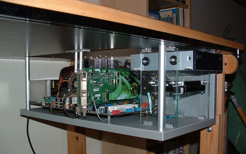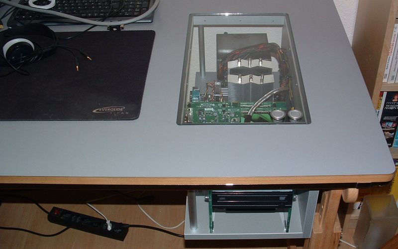 Das Ganze besteht nur aus 4 (5) Bauteilen: DVD-LW, FP, Mainboard (+Grafik) und Netzteil. Die 8-pol Leitung hab ich aus dem NT ausgelötet und für die Laufwerke ein Kabel umgearbeitet (damit es nur eines ist [SATA + MOLEX]).