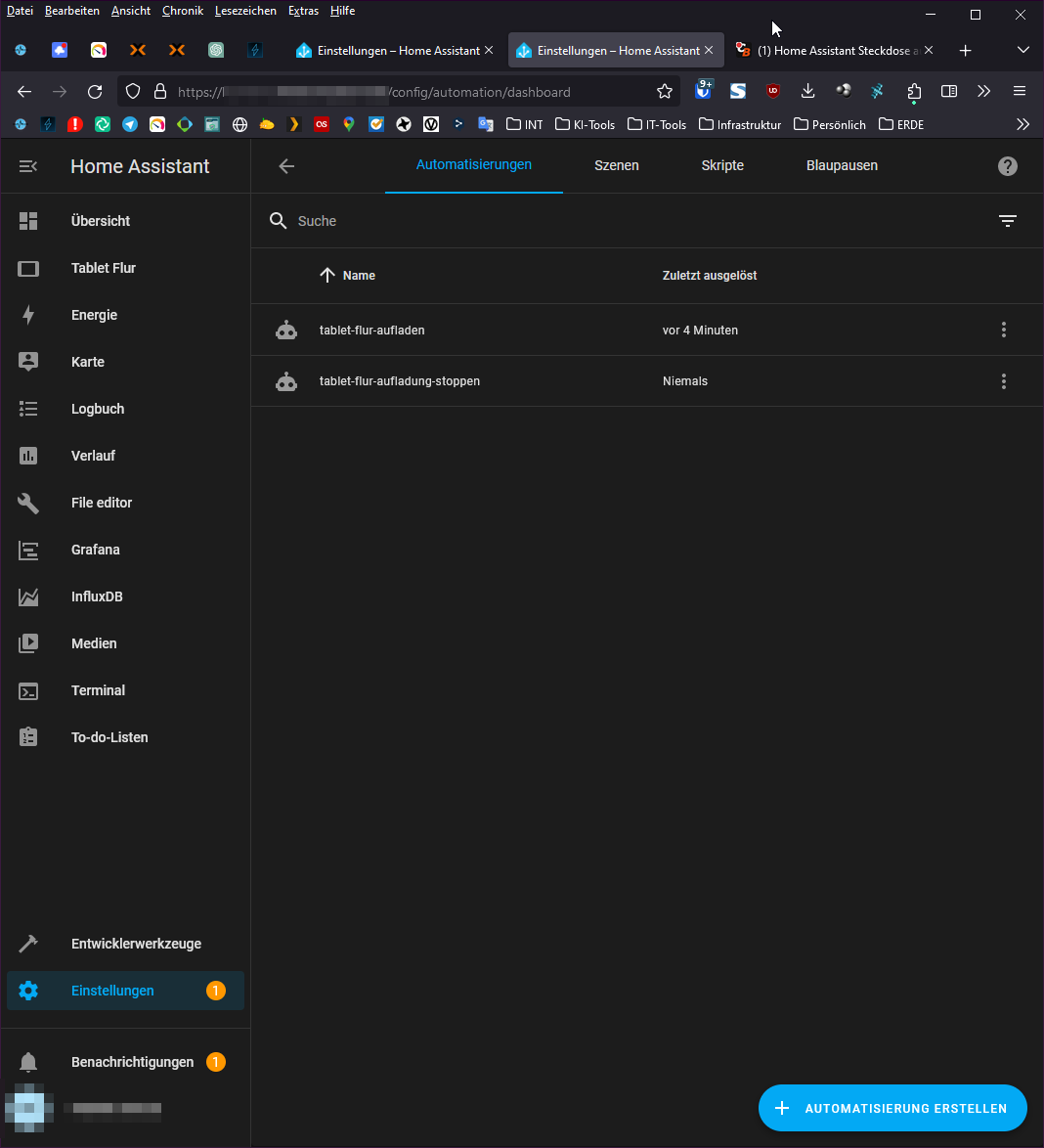 Hab jetzt mal den Batteriestatus überprüft. Der Sensor zeigt mir gerade 96% an, obwohl das Tablet auf 45% steht. Irgendwo scheint da ein Fehler zu sein. Wäre ja kein Problem, die Steckdose per Zeit zu schalten. Aber so nach Akkustatus schien es mir durchaus Sinn zu machen. @MegaCayman die richtige Entität hab ich schon erwischt, danke für den Tipp.