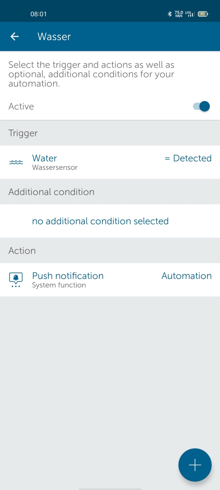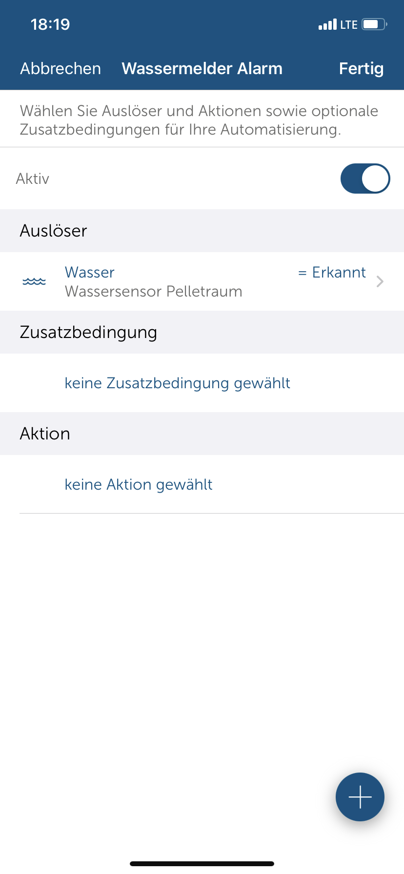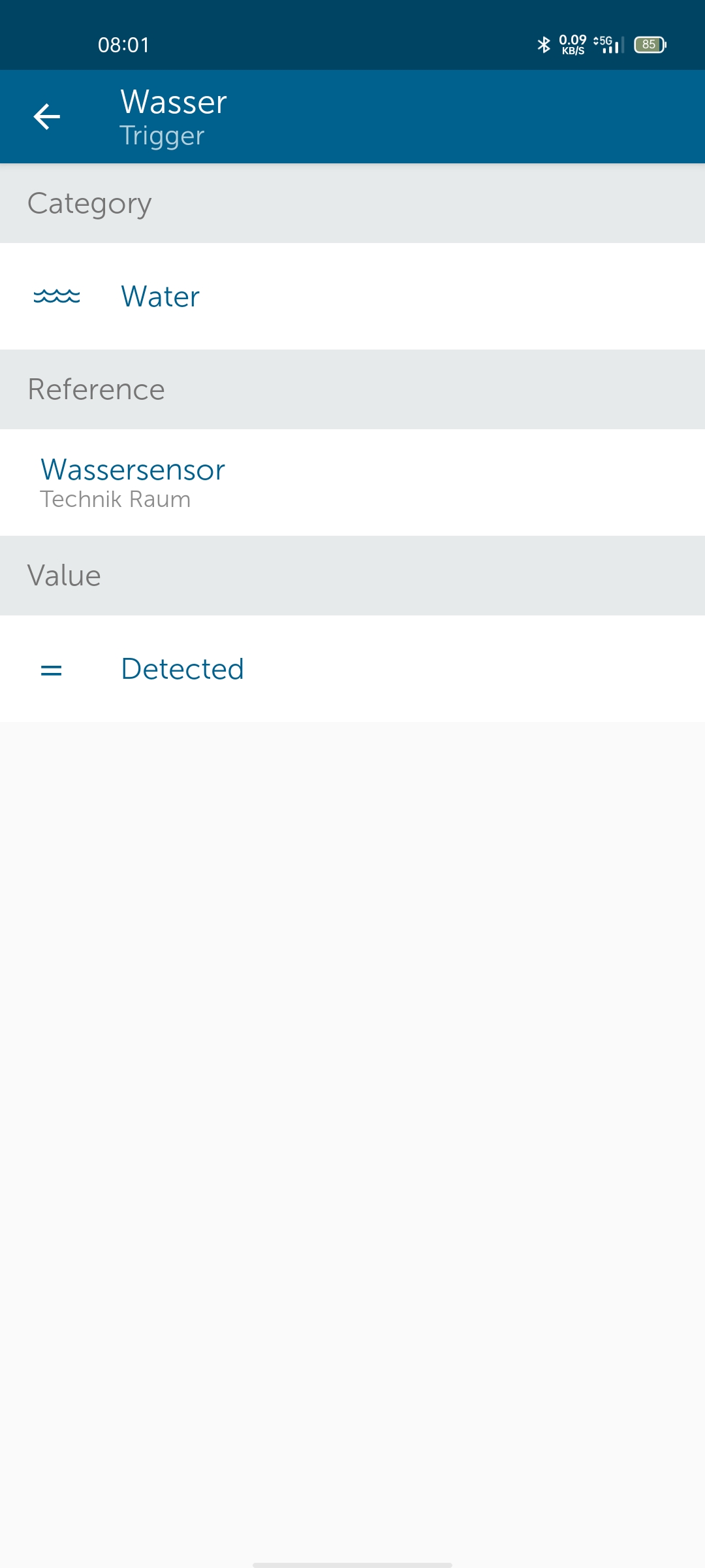- Auslöser: Wasser (und Alarmzustand hab ich auch versucht)
