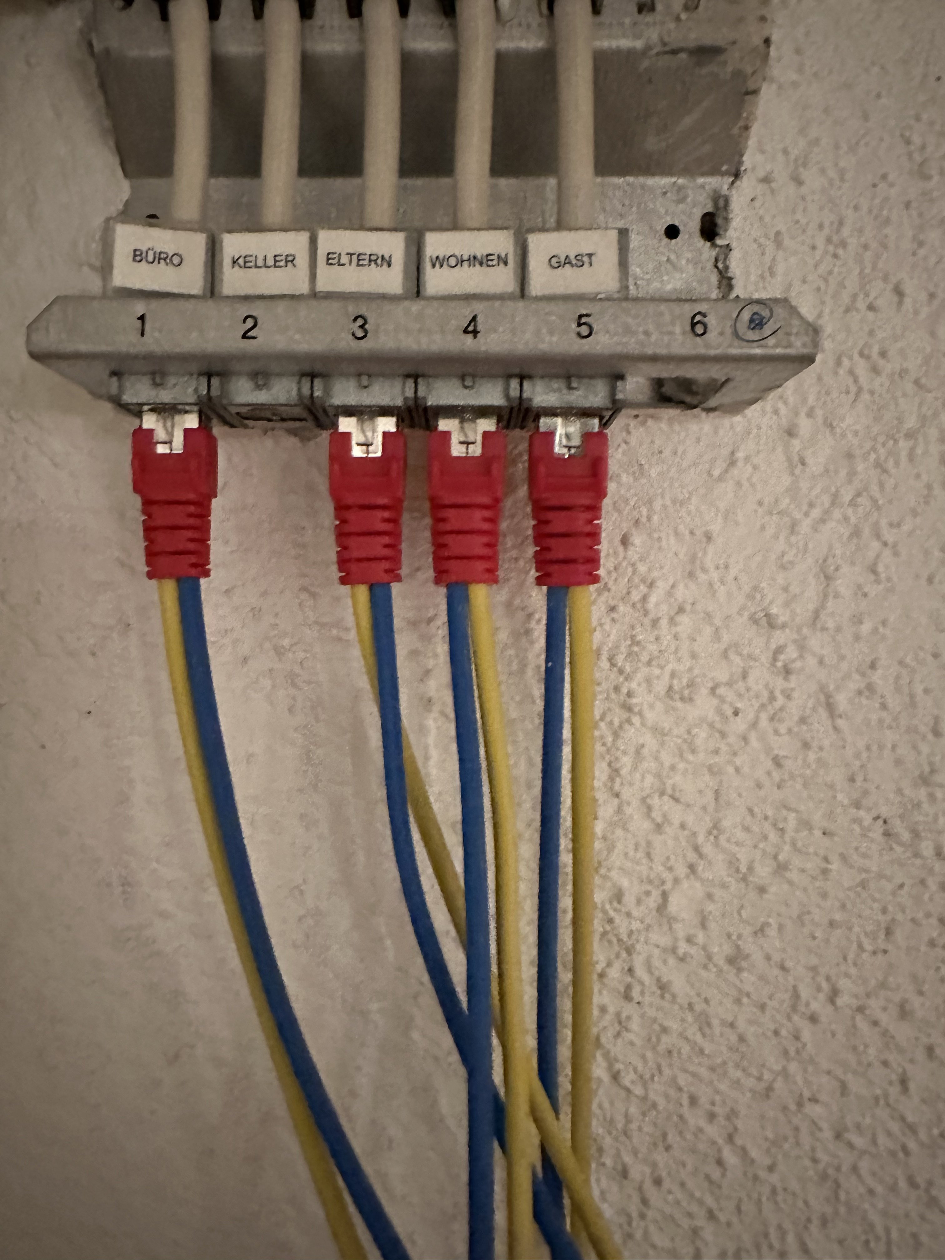 Der Plan ist, dass die besehende Verkabelung vom OG in den Keller quasi rückwärts genutzt wird. Ein Switch im Keller verbindet dann die bestehende Verkabelung in die restlichen Räume.