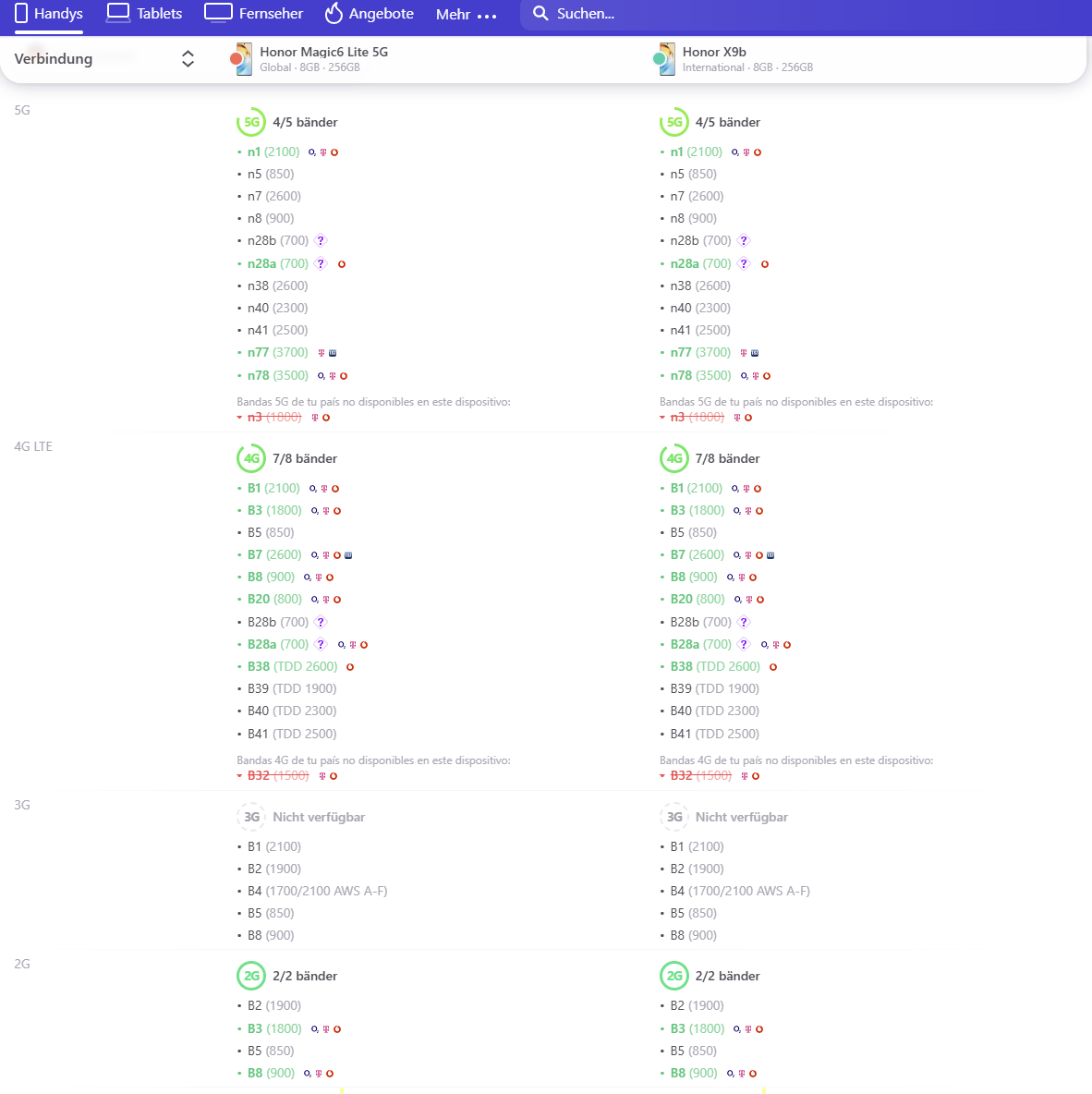 Als Gerätename wird auch Honor Magic 6 Lite angezeigt aber wenn ich die IMEI Nummer eingebe, bekomme ich als Model ein Honor X9B angezeigt.