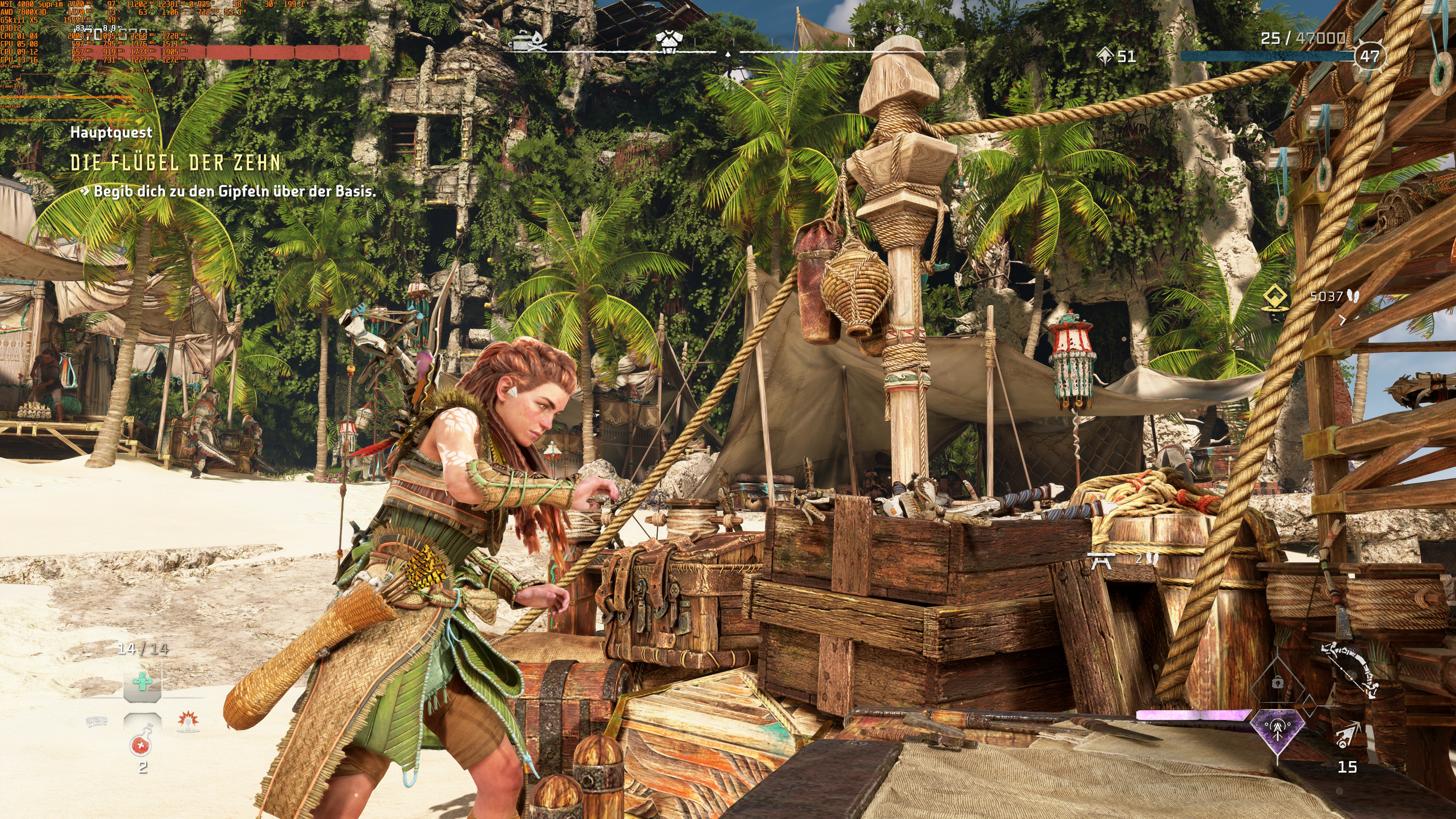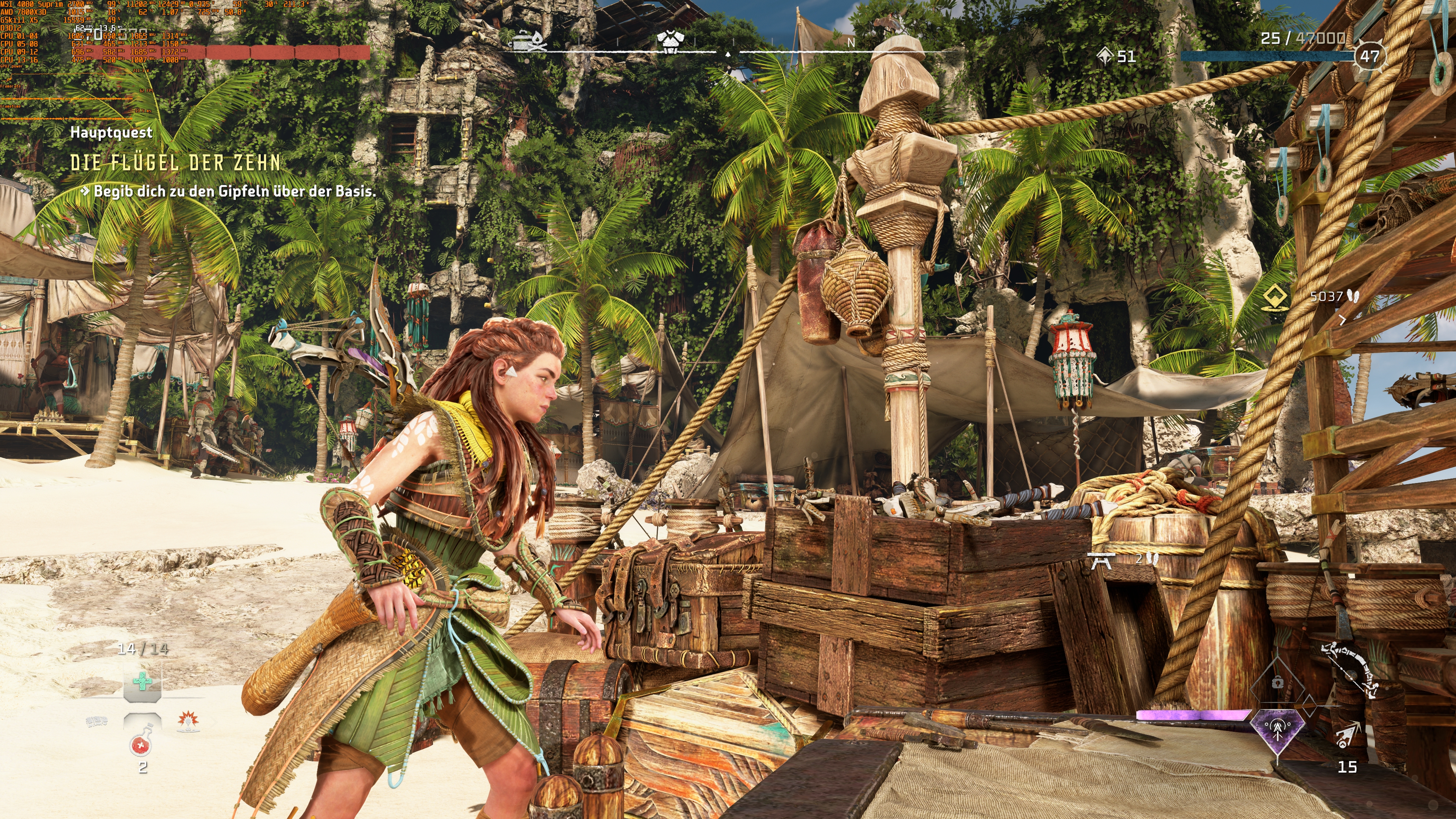 Eine Anmerkung zu den technischen Erfahrungen muss ich doch noch machen: In nunmehr 1.5 Jahren ist HFW das erste Spiel bei dem ich ein minimalstes coil whine meiner Grafikkarte vernehmen konnte. Wohlgemerkt ist es mehr ein tiefes Brummen und "begünstigt" von leisen Lüftern & Pumpen der AIOs auf niedrigster Drehzahl.