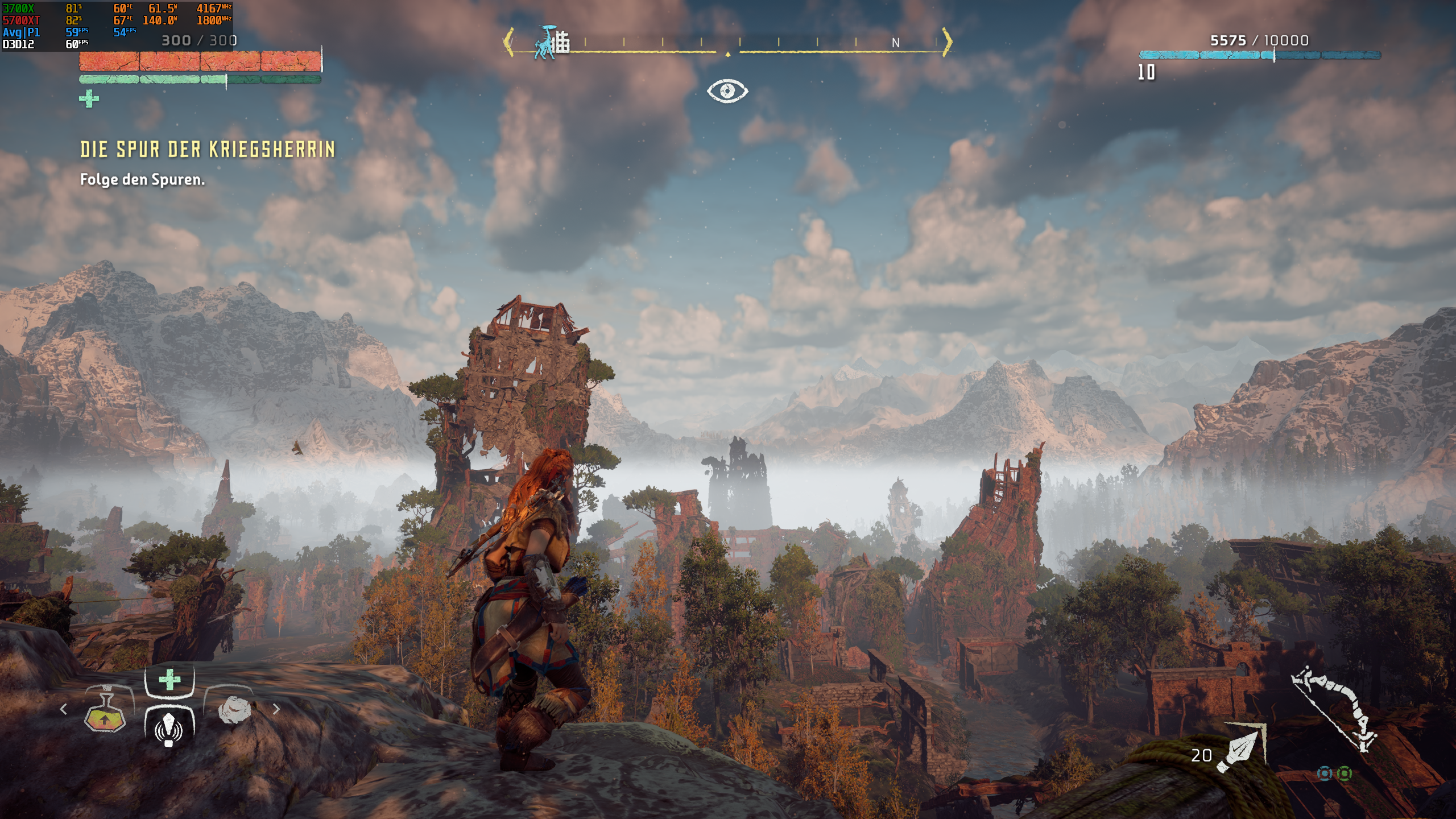 In der Gegend vor dem Nordtor mit viel Vegetation erreiche ich keine stabilen 60 fps, immer so zwischen 40 und 60 und die GPU ist weiterhin bei 99% Auslastung......