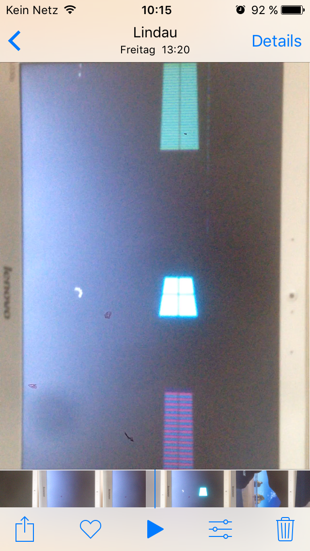 Hier noch zwei Bilder, wie es aussieht. Das graue Flimmern auf dem kompletten Bildschirm ist erst einmal aufgetreten und zeigt den schlimmsten Zustand.