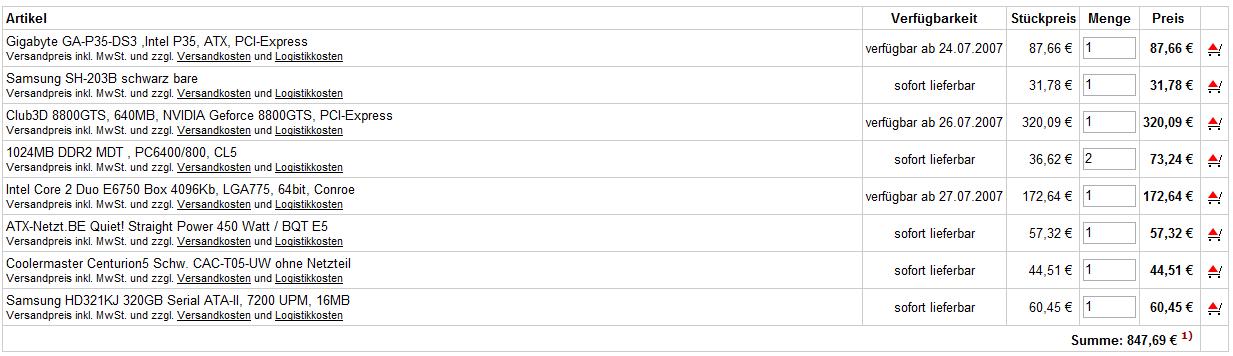 Gut der Rest ist nebensächlich. Gehäuse ist ihm egal, NT sowieso, dann DVD Brenner plus DVD Laufwerk und das sollte es auch schon gewesen sein.