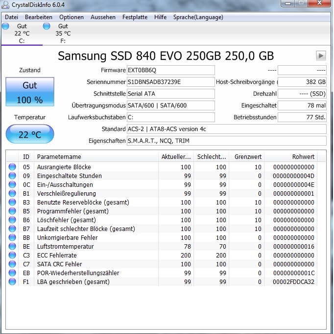 Wenn ich mit dem Programm CrystalDiscInfo meine Samsung Evo SSD auslese ist mir aufgefallen das die GB's bei Host Schreibvorgänge immer grösser werden.