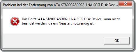 Jetzt möchte ich nur noch gerne wissen wie ich den PC dazu bringen kann dass er die Festplatte auch auswirft wenn ich sie entfernt habe... Ich kann sie zwar aus dem Gerätemanager löschen aber dann müsste ich den PC neu starten.