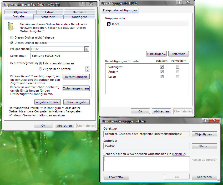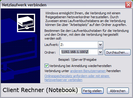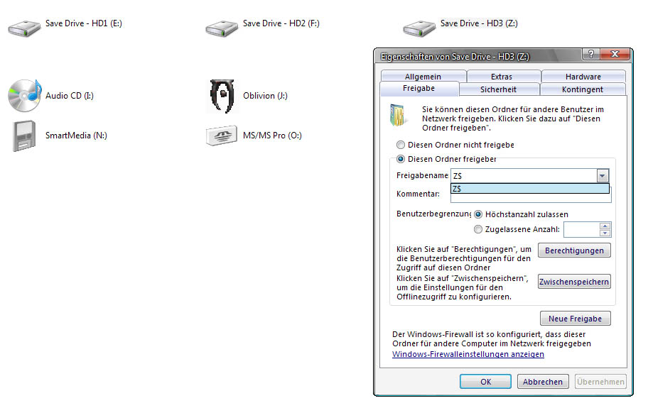 - Ich hätte gerne ein Netzwerk Laufwerk, anstatt ein neuer Laufwerk zu machen will ich einfach meine 3 Partitionen auf mein Haupt PC (Will es aber nicht als 24/7 Server brauchen!) freigeben, so das alle PCs und NB's in meiner Netzwerk zugreifen bzw. ändern, hinzufügen kann.