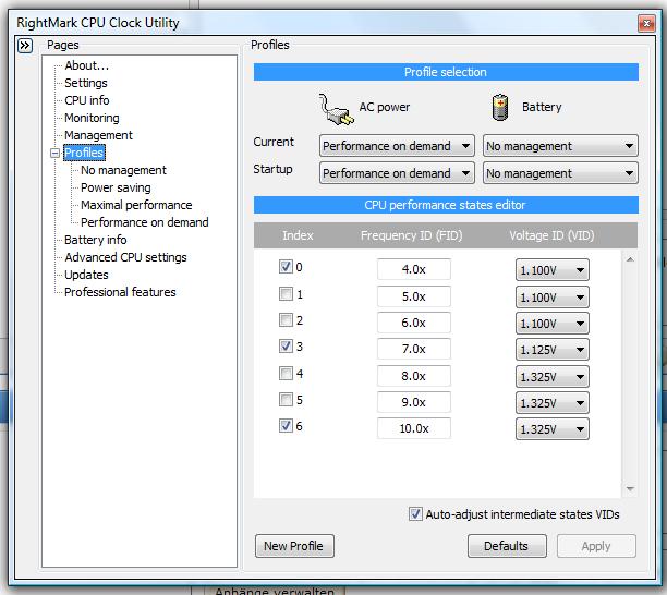 Endlich kann man sich wieder wie zu besten Zeiten des Rightmark Clock Utility oder CrystalCPUID die P-States selbst definieren und so entweder undervolten oder übertakten, ganz nach belieben.