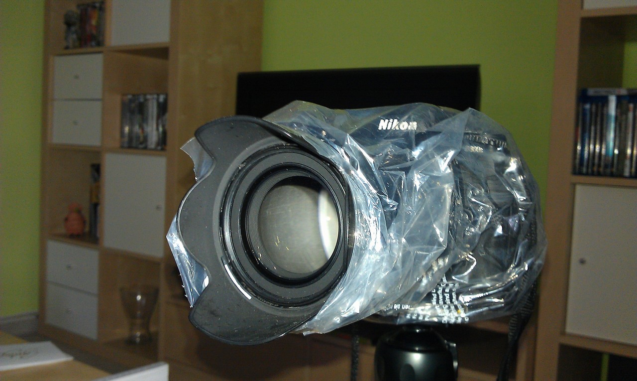 Man nehme einen Gefrierbeutel oder bei größeren Kameras auch einen Müllbeutel.