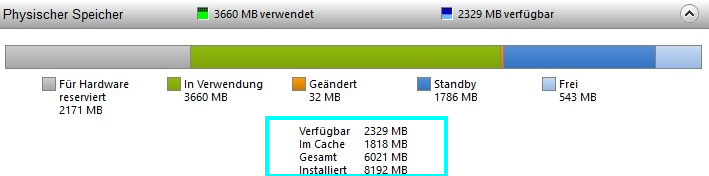Im Cache: Die Summe aus Standby und Geändert. Geändert ist der Teil des Cachings, der nicht sofort freigegeben werden kann.