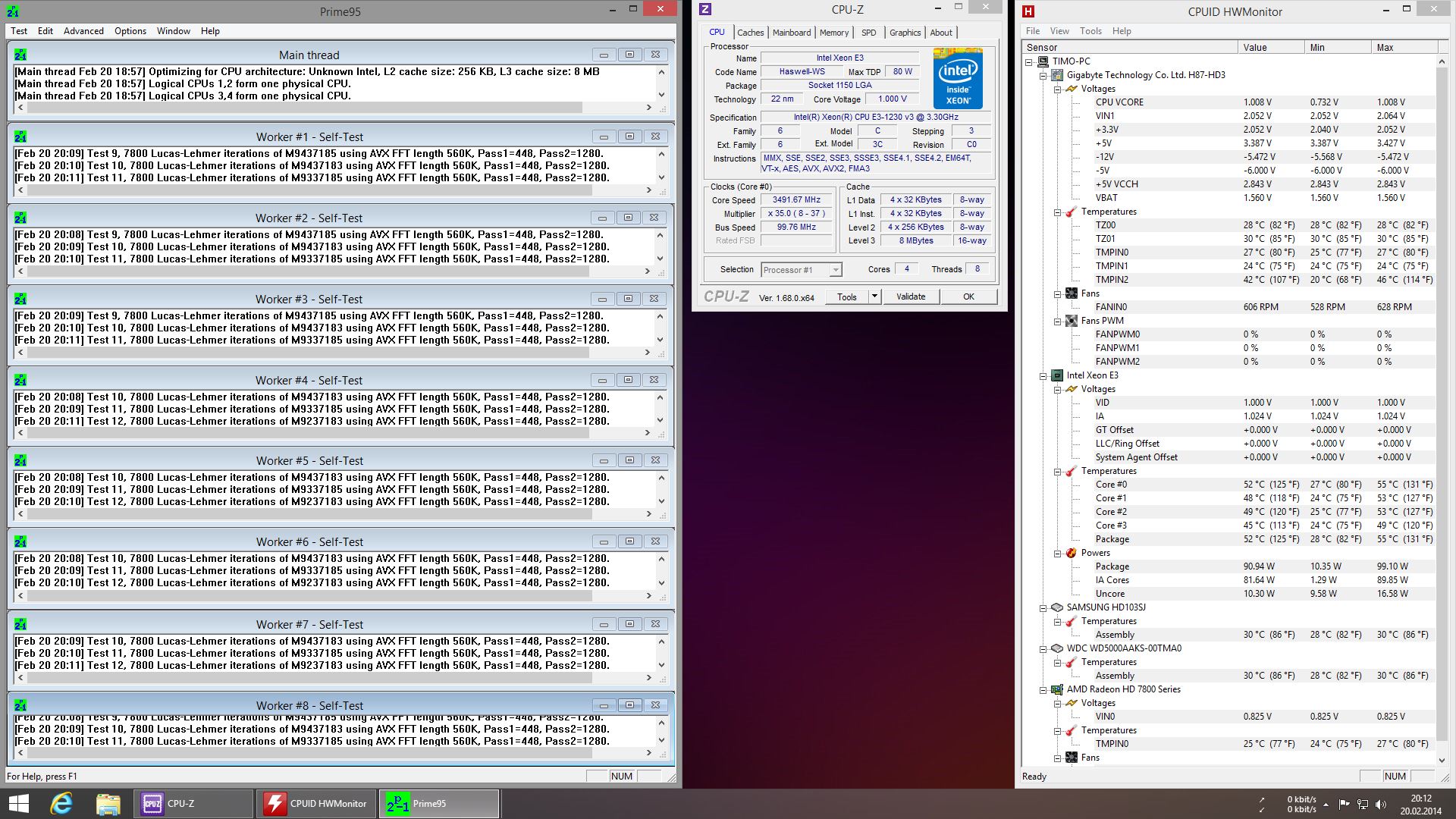 Generell muss man wissen, dass der Xeon ein echter Haswell ist: D.h. auch ein Xeon wird heiß! Wieso weshalb warum Haswells heiß werden ist bekannt!