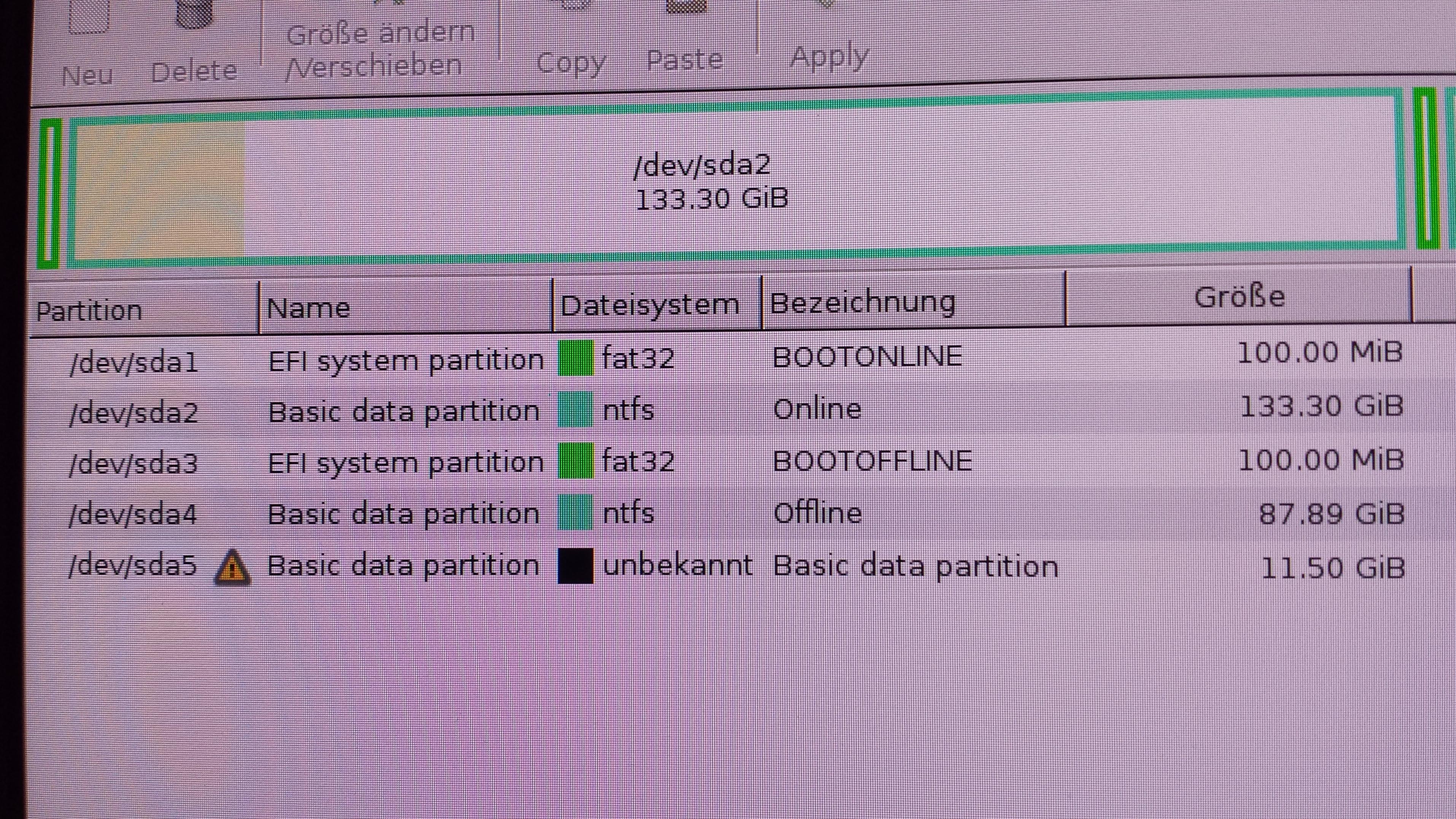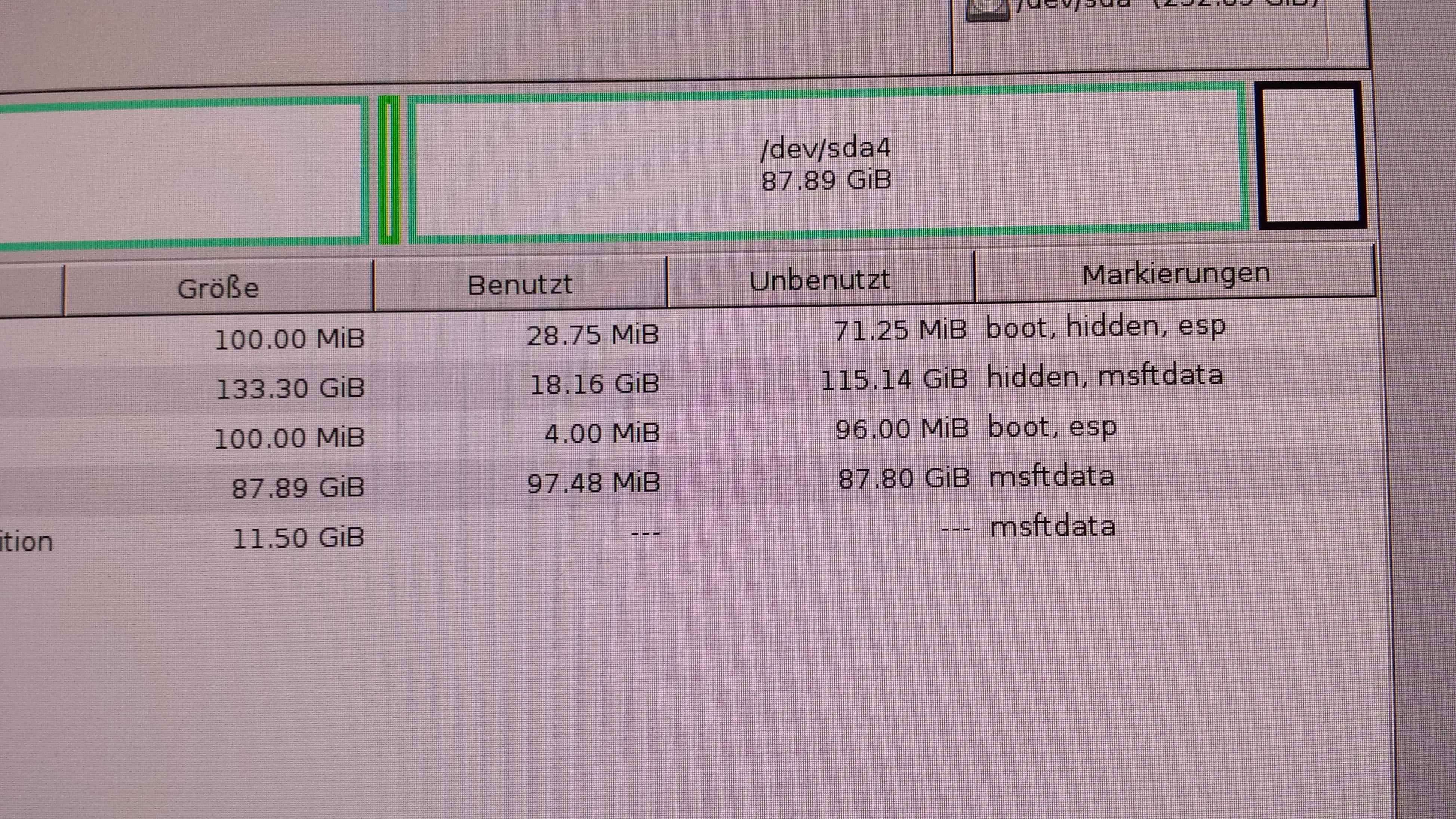 Aber auf Anhieb klappte es dennoch nicht. Habe die benötigten Partitionen angelegt, zwar mit einen anderen Partitionierungstool aber das sollte ja keinen Unterschied machen, und dann mit einer GParted Notfall CD die anderen Partitionen versteckt.
