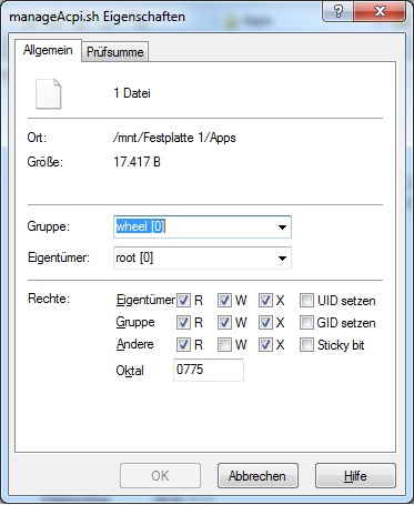 Auch die Rechte fürs Lesen/ Ausführen habe ich aktiviert.