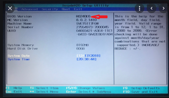 Ist die letzte Biosversion F.52 Rev.A auf dem Gerät?