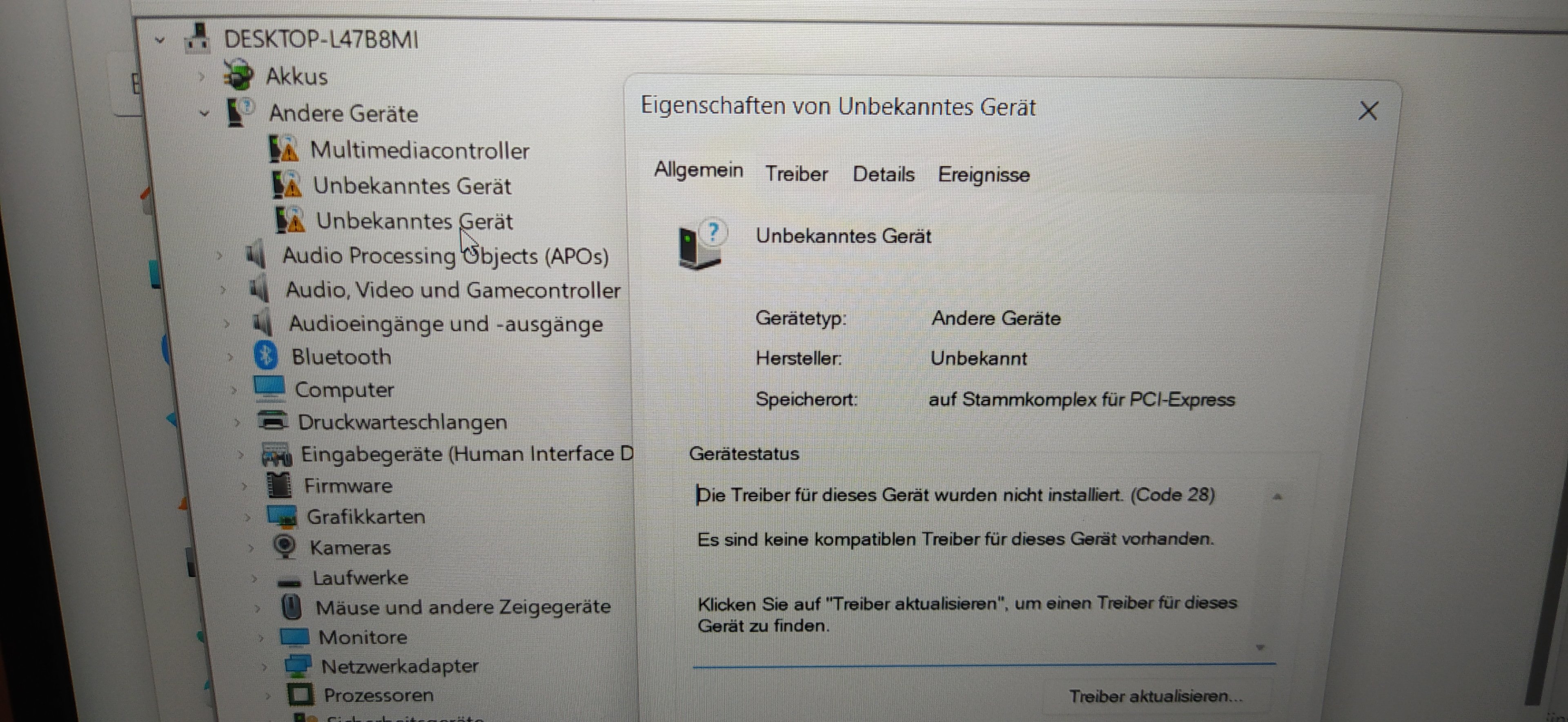 - Über den Gerätemanager alle fehlenden Treiber nachinstalliert