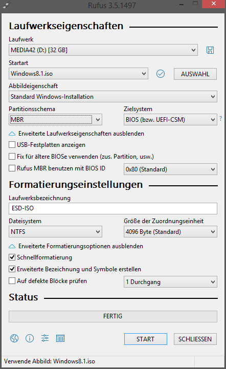 - Von 2 verschiedenen USB Sticks installiert