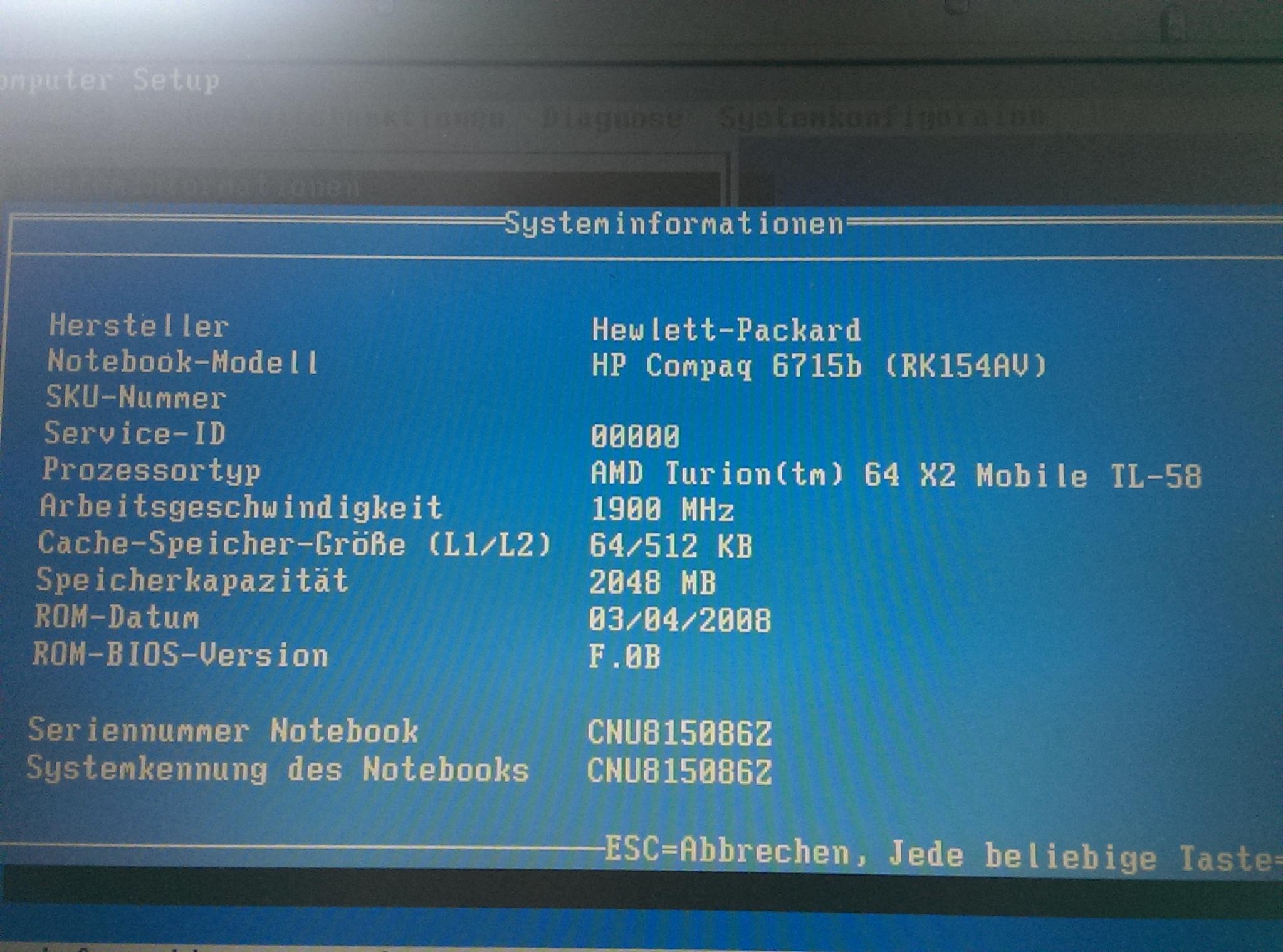 ich habe meinen HP 6715b von 2x1GB DDR2 667 auf 2x2GB DDR2 667 aufgerüstet.