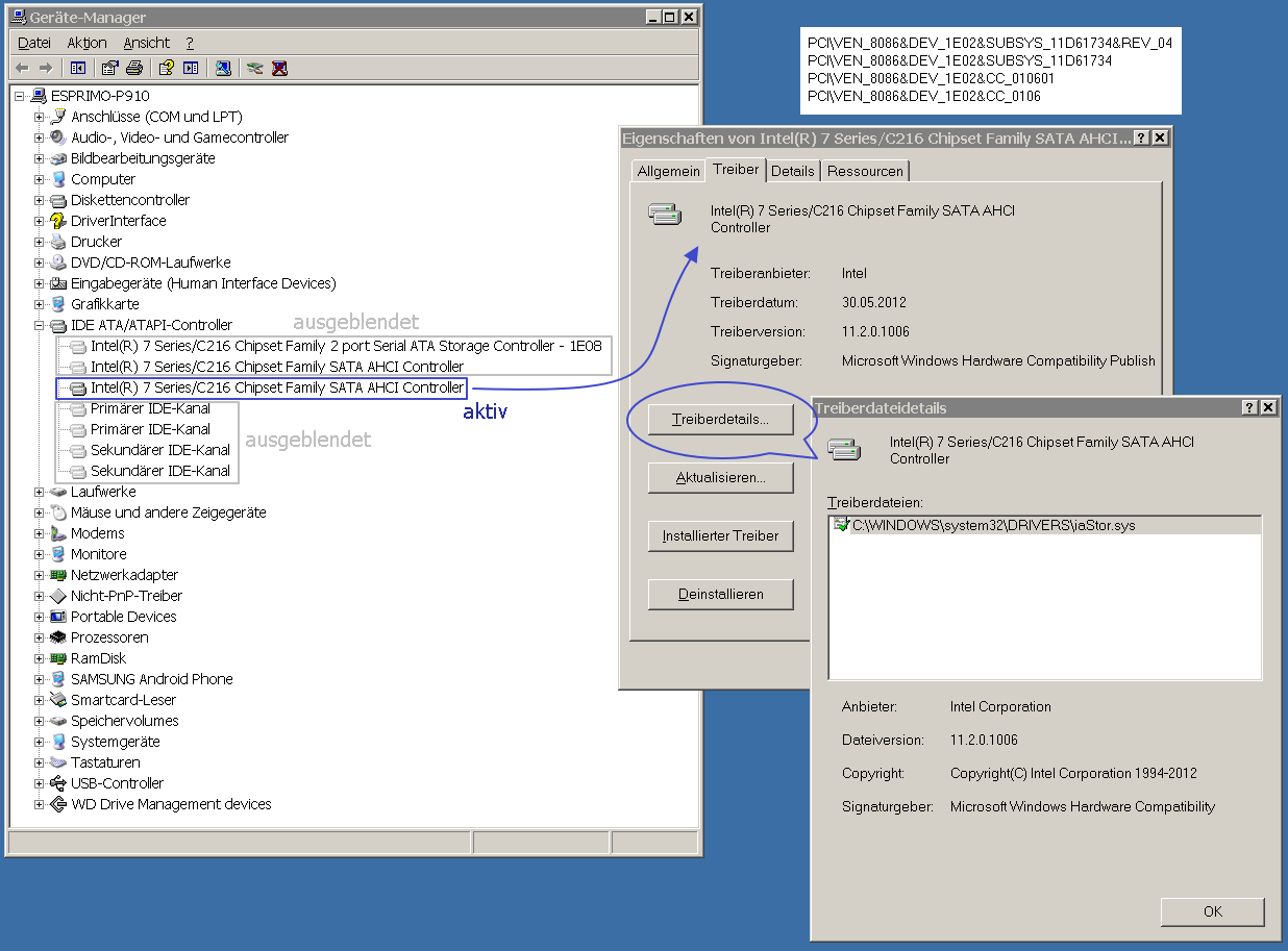 Normalerweise schreibt es dir den gleich an - ich ahtte bei einem DC 7700 drei Möglichkeiten - einer war ein mobile - den habe ich nicht genommen - der andere passte aber nichtRolando schrieb:Damit werde ich dann versuchen, wenn ich weiß welche Treiber ich auswählen soll, Windows neu mit aktiviertem AHCI zu installieren.