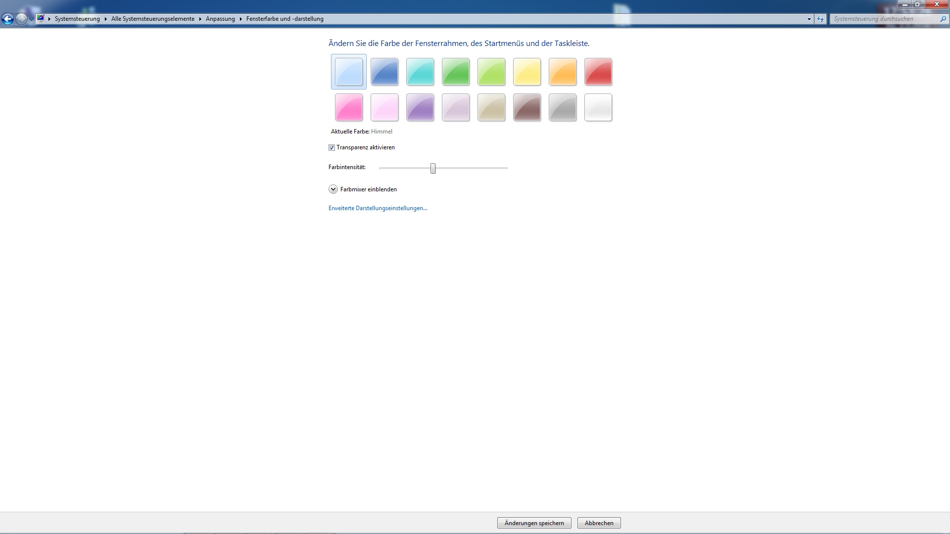 Das zweite Problem ist, das ich die Fensterfarbe nicht in "Aero" ändern kann - siehe auch hier das Bild!