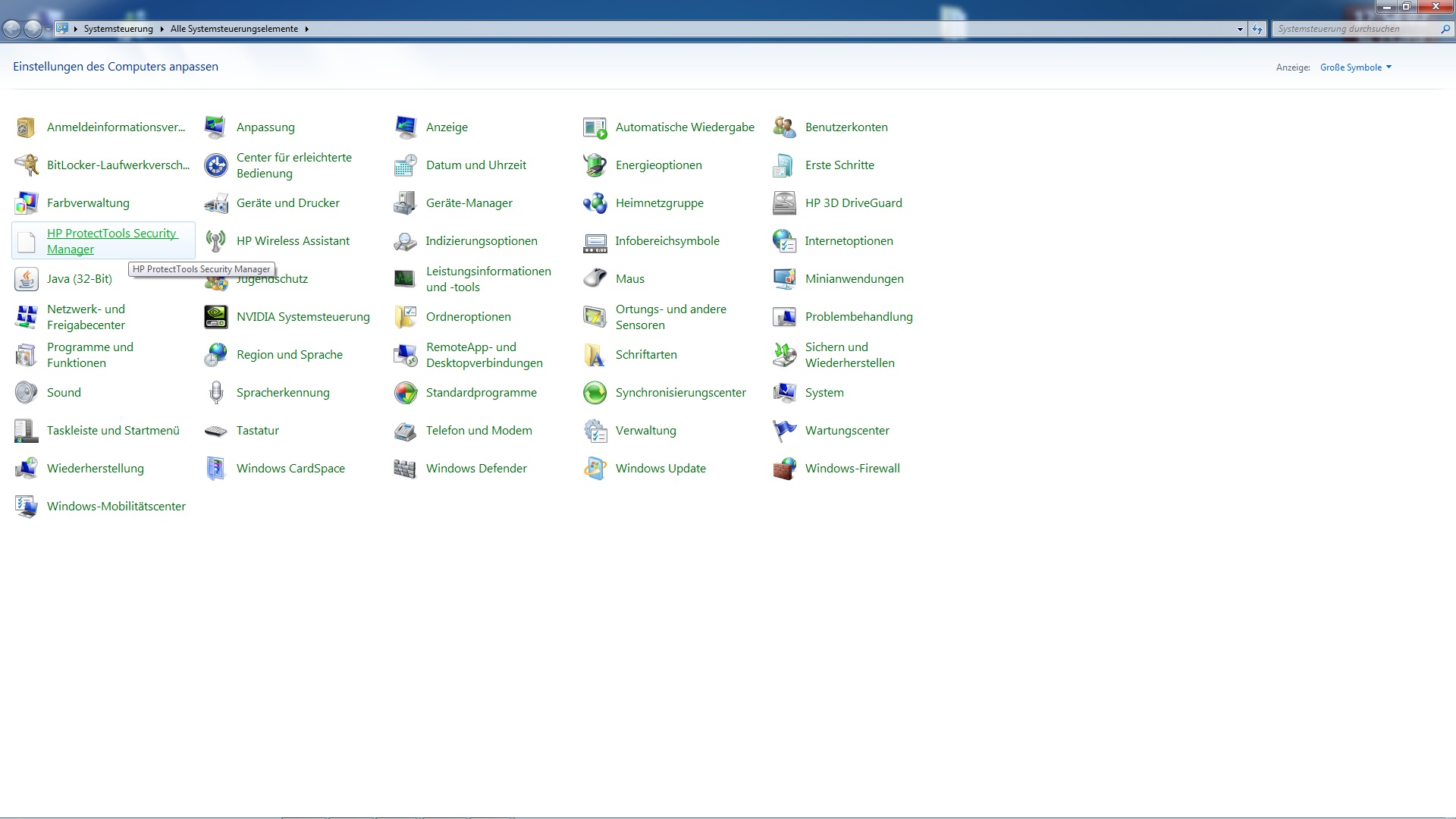 Zusätzlich auch die Software "HP ProtectTools Security Manager". Diese wird aber nicht richtig in der Systemsteuerung angezeigt (siehe Bild), und man kann es auch nicht starten.