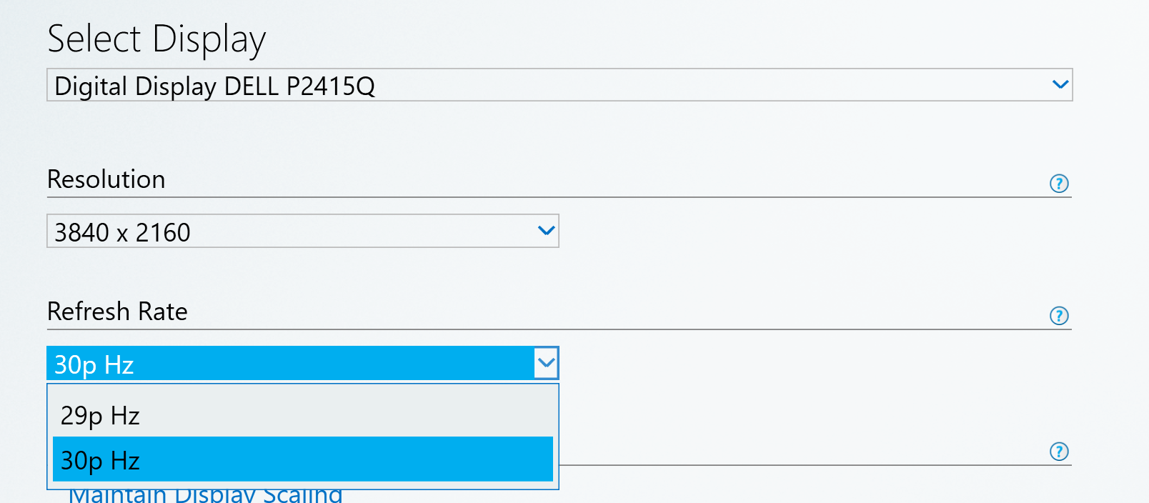 Trotz mehrerer Versuche schaffe ich es nicht, den Dell P2415Q ein Bild in 3840x2160 und 60Hz darstellen zu lassen.
