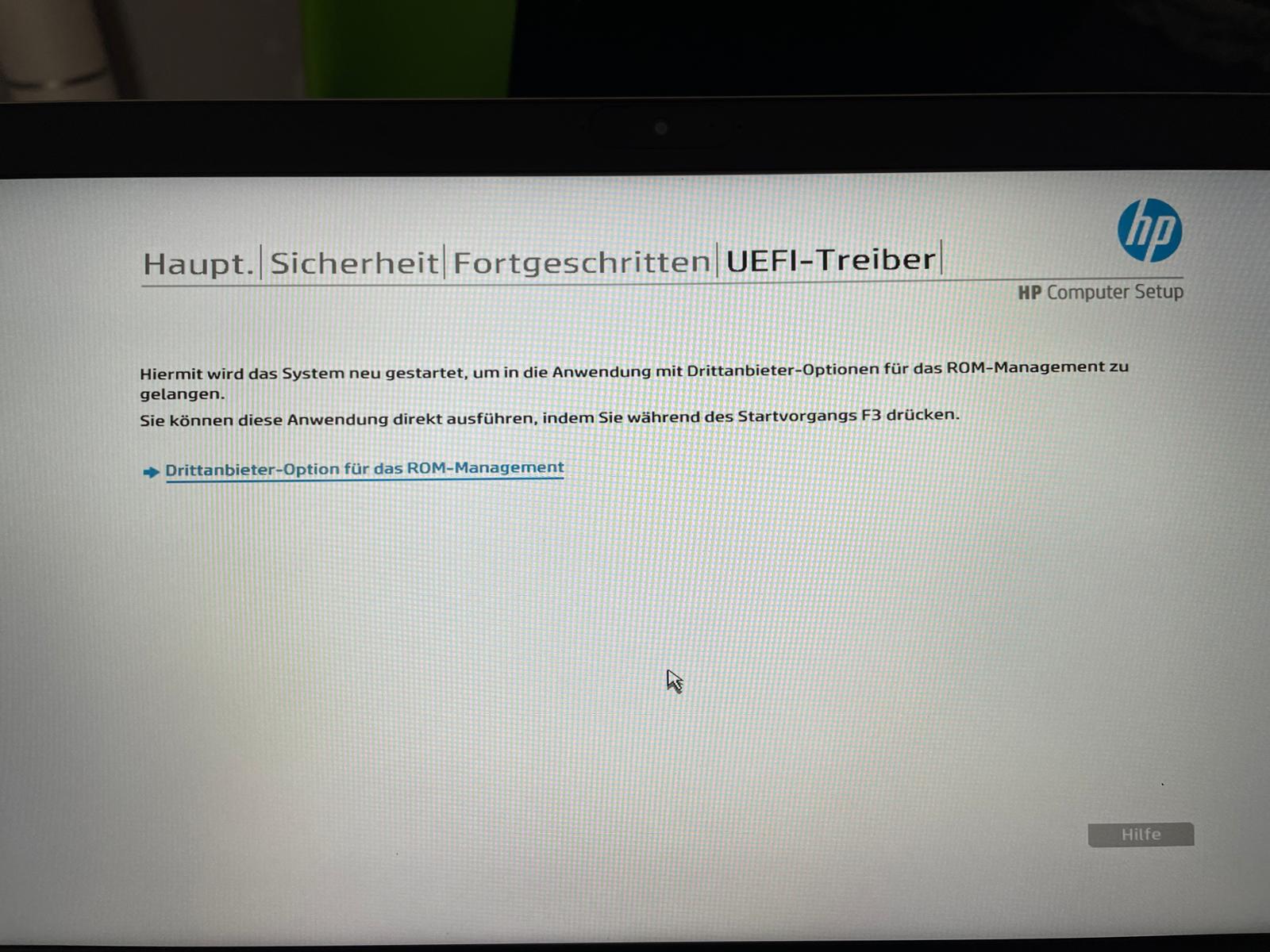 Nachdem das HP vom Stick die Daten gezogen hat und nach dem Booten in den Inst. Modus gehen sollte, hängt es.
