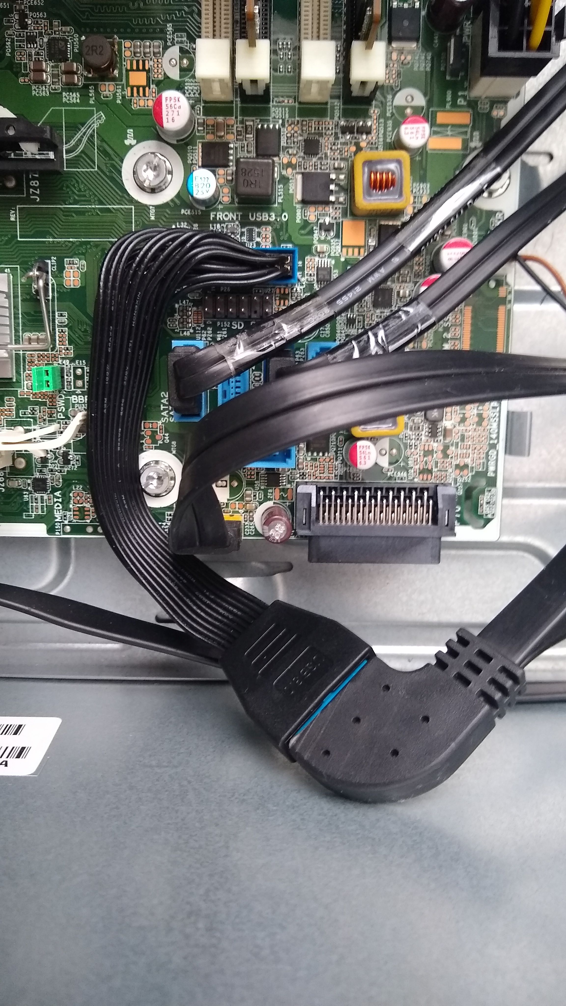 In einen HP EliteDesk 800 G2 Tower soll eine lange Grafikkarte eingebaut werden. Der Laufwerkskäfig wurde bereits entfernt, nun ist für eine lange Grafikkarte nur noch der interne FRONT USB 3.0 Anschluss im Weg. Wir haben uns nun darauf verständigt, den Stecker einfach zu ziehen und auf die Frontanschlüsse zu verzichten, dann passt die Grafikarte gerade so über die Buchse. Sollte man FRONT USB unbedingt brauchen, könnte man immer noch eine USB 3.0 Steckkarte installieren. So weit klang der Plan gut, nun macht aber das HP-BIOS einen Strich durch die Rechnung und warnt bei jedem Einschaltvorgang, dass ein nicht angeschlossener Stecker erkannt wurde. Sind hier irgendwleche HP-Experten, die wissen, ob und wo man die Steckererkennung im BIOS deaktivieren kann? Es geht um den Burschen hier:
