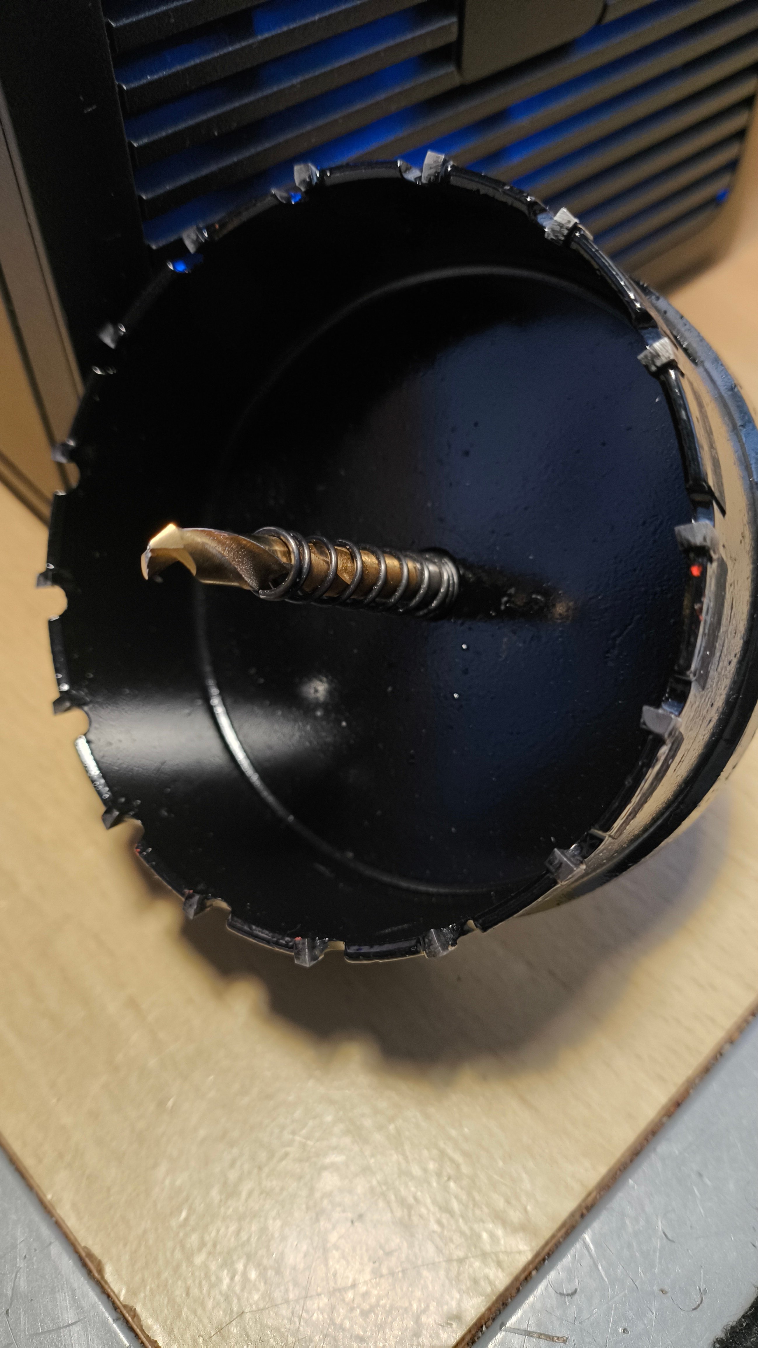 Also ging ich einen Schritt weiter und bohrte zwei 90 mm Löcher in den Gehäusedeckel, wodurch zwei Alphacool Eiszyklon Platz fanden Die saugen jetzt die Abwärme der Grafikkarte auf direktem Wege aus dem Gehäusedeckel raus.