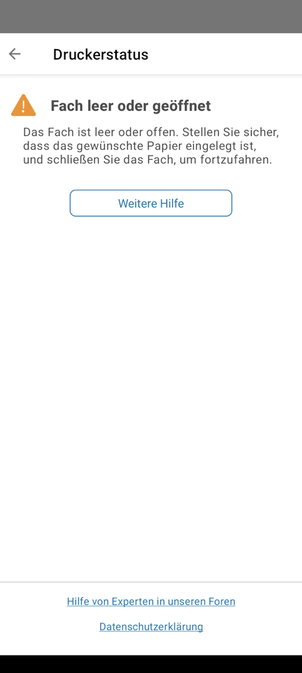 Drucker benötigt einen Benutzereingriff.
