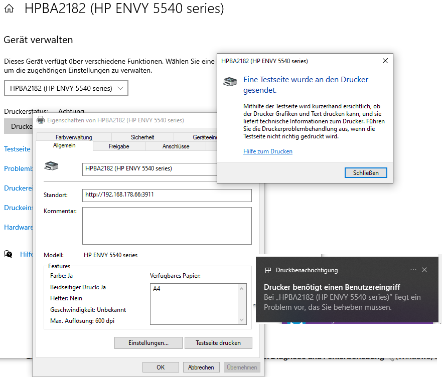 PS Auf dem Laptop (benfalls Windows 10) hing immer noch die Testseite in der Druckerwarteschlange, die hatte er nicht gedruckt. Ich hab's auch hier nicht mehr ausprobiert, nachdem's vom PC aus lief.