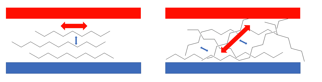Ziel ist netto ein möglichst guter Wärmeübertrag von heiß (rot) nach kalt (blau). So stelle ich mir zumindest das Konzept vor. Die Dämmwirkung von Schaumstoff beruht (vereinfacht gesprochen) auf einem Unterbinden von Konvektionsaustausch und einer Minimierung von Festkörperwärmeleitung (weil schlicht weniger Material als im Vollvolumen vorhanden ist). Dieser Effekt wird potentiell aber durch die sehr hohe Wärmeleitung innerhalb der Graphen-Ebenen überkompensiert.