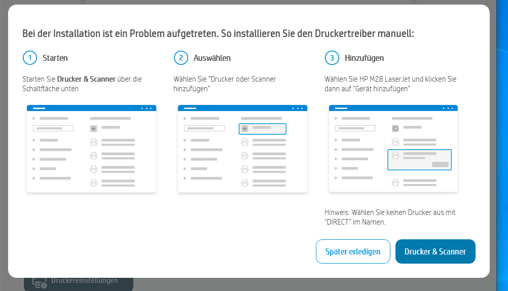 - In der HP Smart-App wird der Drucker jedoch nicht erkannt.